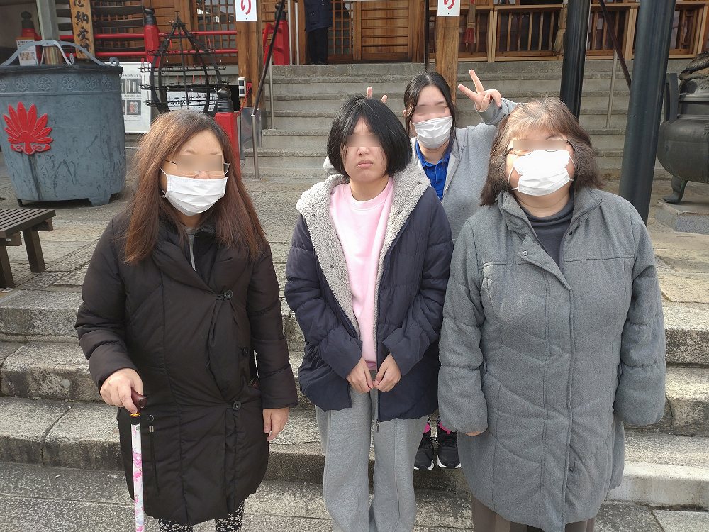 今回はデイ・夢愛で外出による機能訓練として近くのお寺に初詣に行った時の様子を紹介させていただきます。