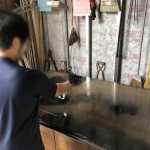 古くなったテーブルの天板を綺麗にしました。 新しく上からスプレー!! みんなでや …