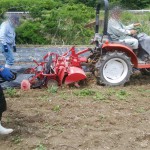 厳しい日差しの中、一生懸命耕運機を使って 畑作業を頑 …