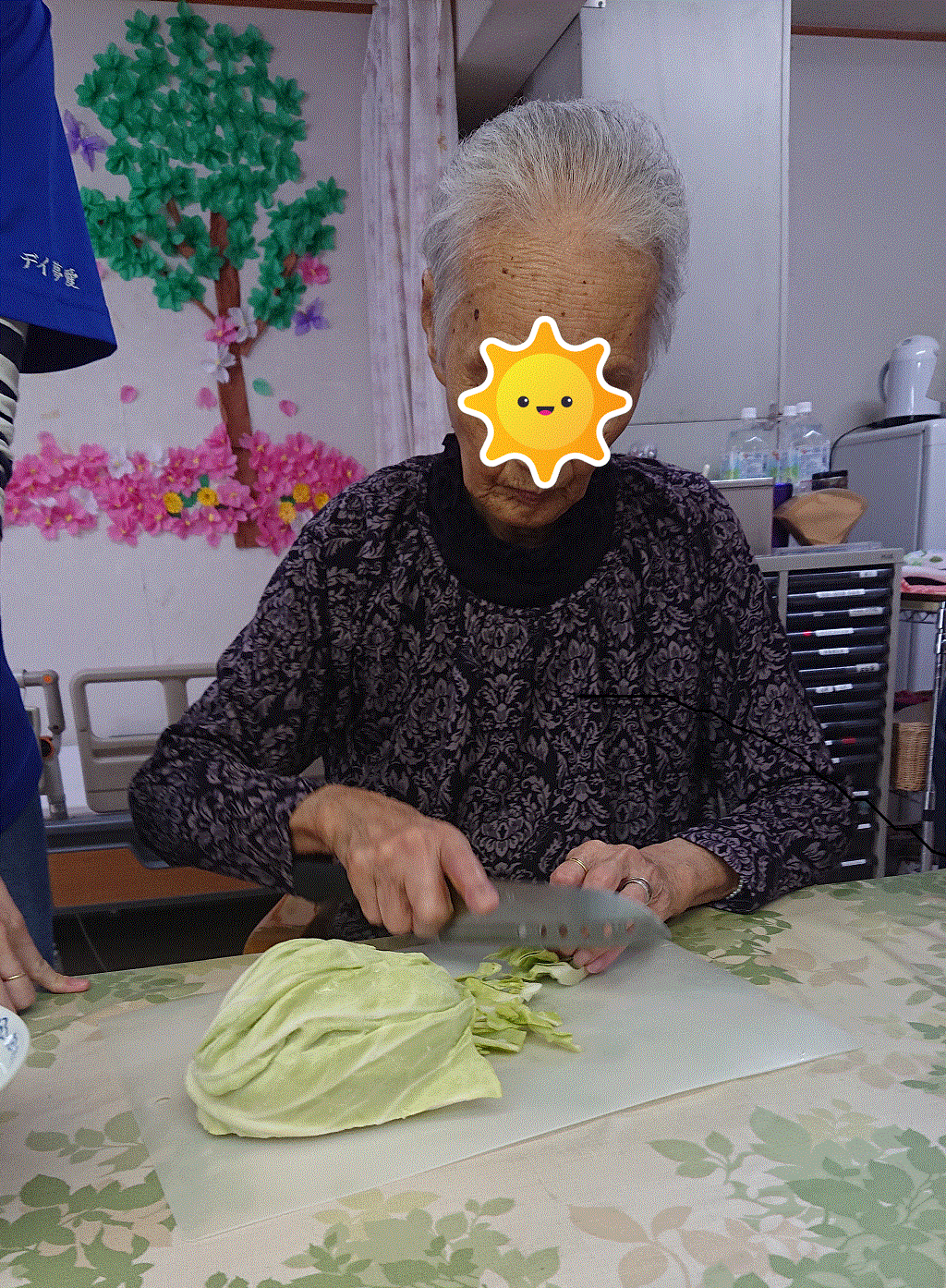 「キャベツは芯まで捨てちゃだめだよ、食べ物を粗末にしてはだめだよ」と食べやすくしてくださいました。