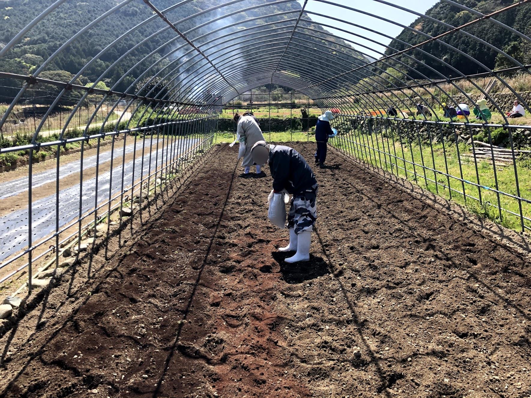 こんにちは!ジョップ上五島の原です。今回はジョップ上五島が開所した頃からやっている農作業の風景をお届けしたいと思います♪IMG_2711手作業で丁寧に雑草を除草しています。IMG_2710野菜の種を蒔く前にたっぷり肥料をやります。IMG_2712マルチシートというのを貼り、種蒔きが終わったら水やりです♪IMG_2709ジョップ上五島では、この大自然の中で就労に向けての体力作りと他の利用者さんとの助け合いでコミュニケーションを養いながら楽しく作業を行っています♪