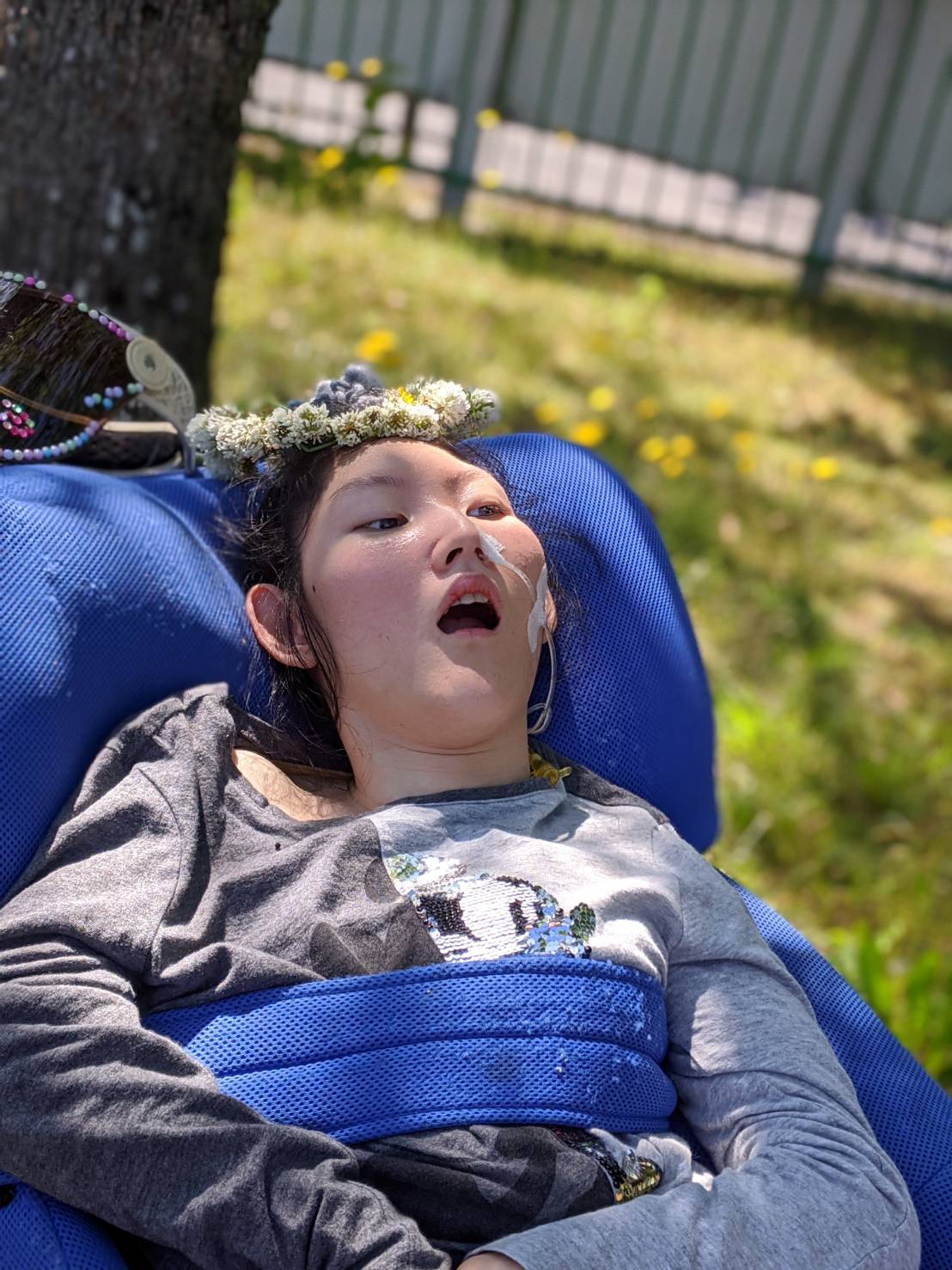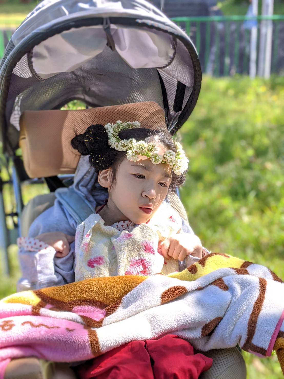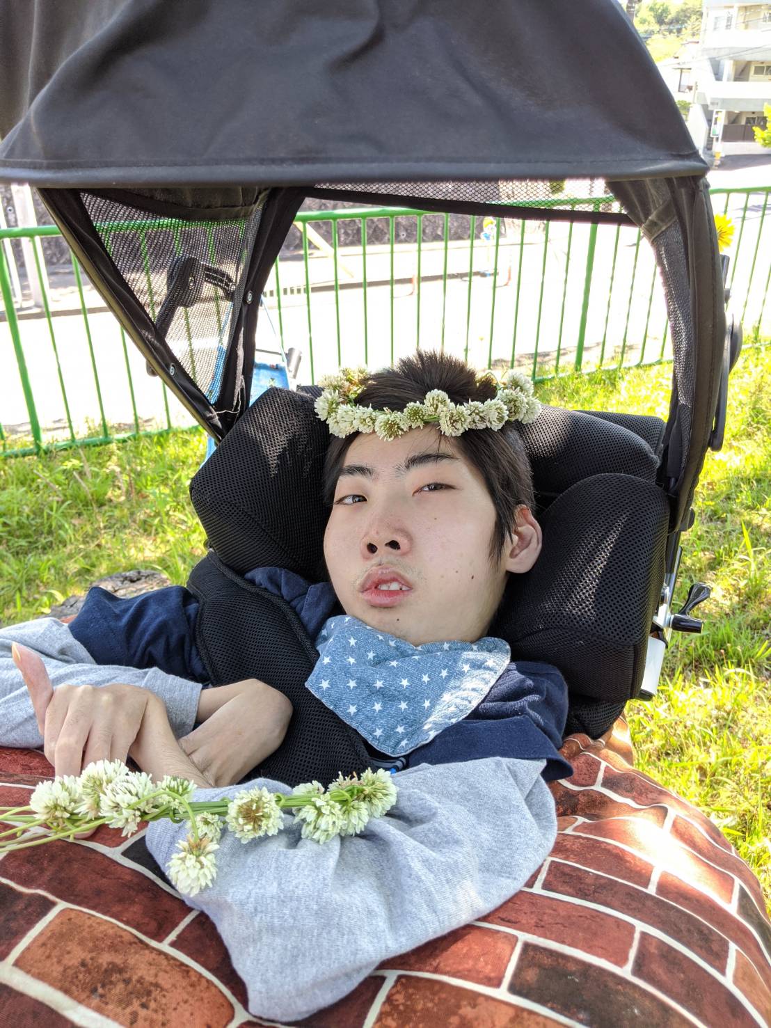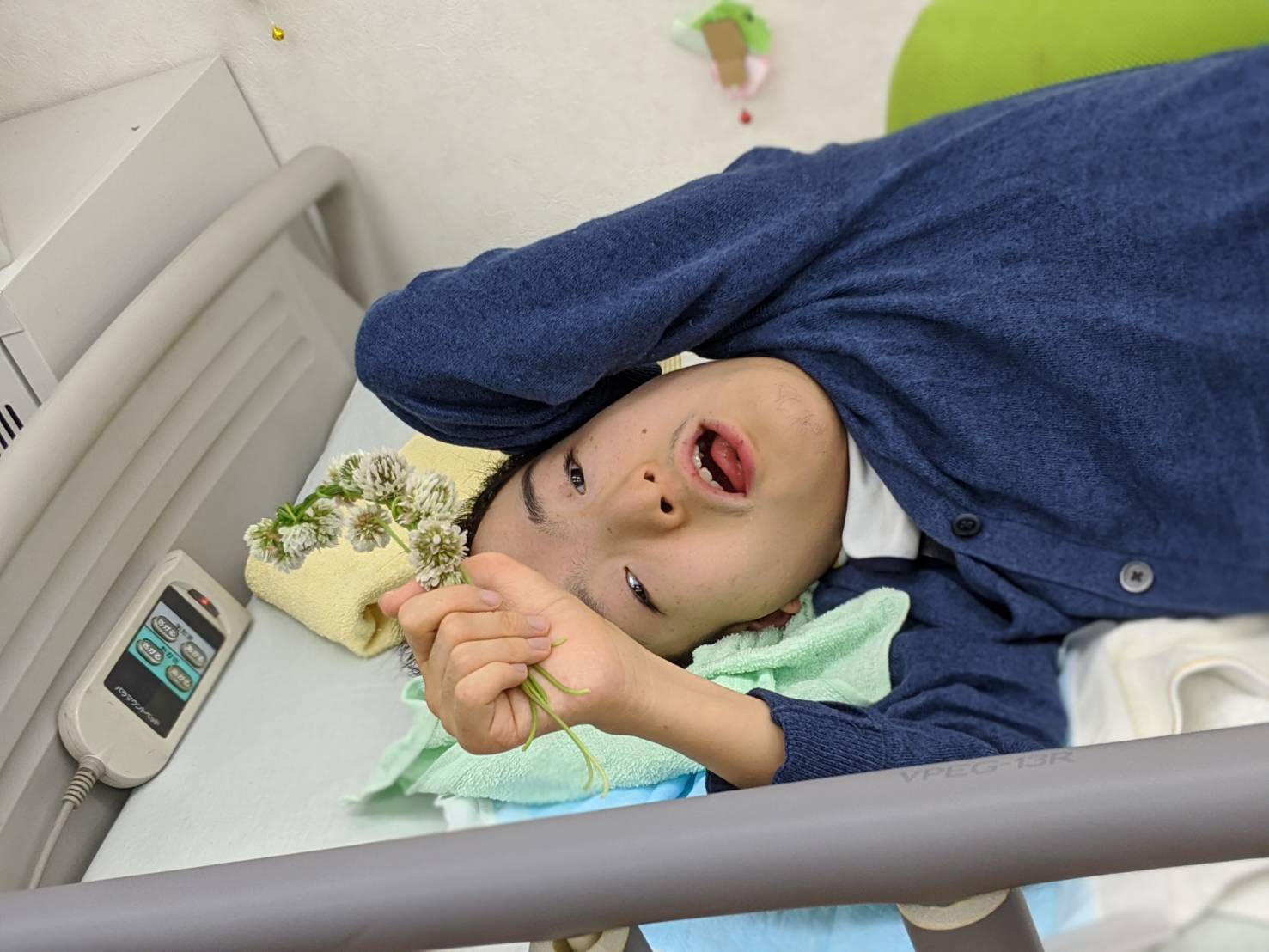 事業所で別のプログラムに参加していたフレンズにもシロツメクサをおすそ分けすると、