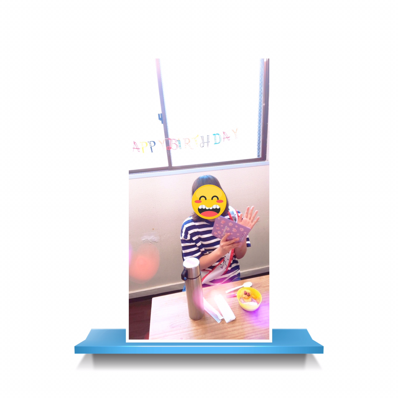 プレゼントとして、職員からのバースデーカードをもらいとても嬉しそうでした。