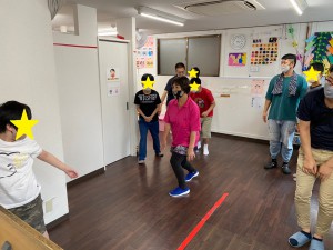 ホーム > 未分類 > 室内レク 2020/07/17 2020/07/17 こんにちは、トムソーヤの鈴木です。 梅雨のせいか蒸し暑い日が続いておりますが皆さんいかがお過ごしでしょう。 トムソーヤの利用者さんは元気に来所をされています。 今回は室内レクで昔の遊び(はないちもんめ)・(だるまさんが転んだ)をやりました。 とても楽しまれていました。 トムソーヤの活動で気になることがございましたらお気軽にお問い合せ下さい。 TEL:052-871-5551 FAX:052-871-5552 担当:蛯原 - 未分類