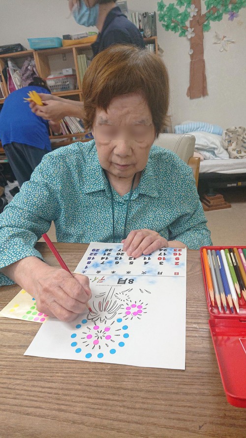 次は塗り絵!夏っぽい花火の塗り絵で外に出かけられない分季節を感じていただけると思います。