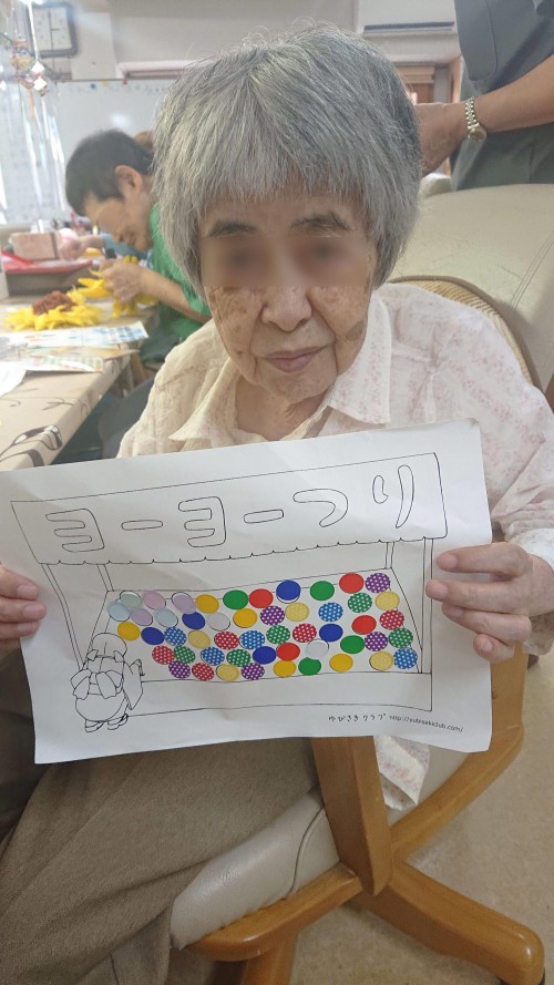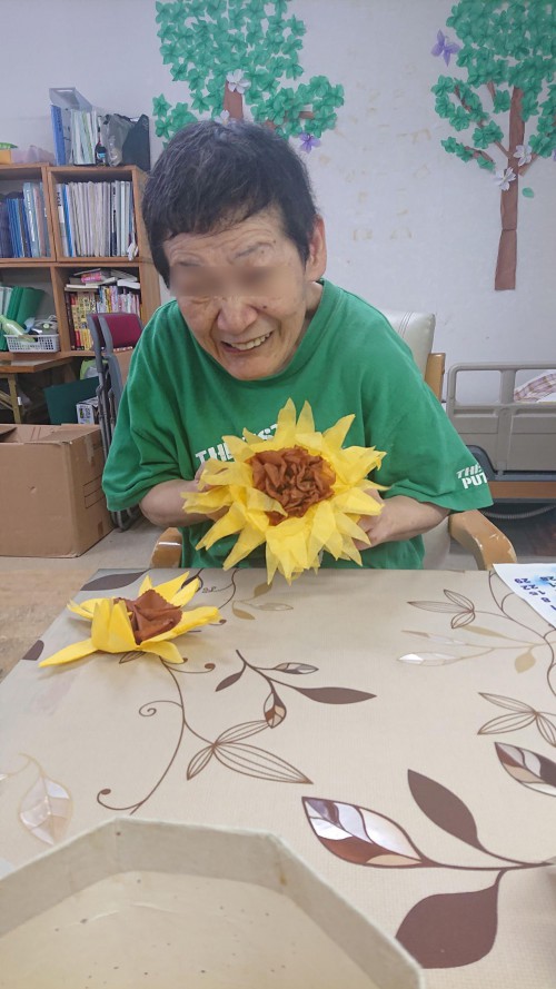 さらに向日葵の飾りつけもスタッフと一緒に作りました。部屋の中でも少しでも夏を感じられるように皆さん考えて活動してくださっています!