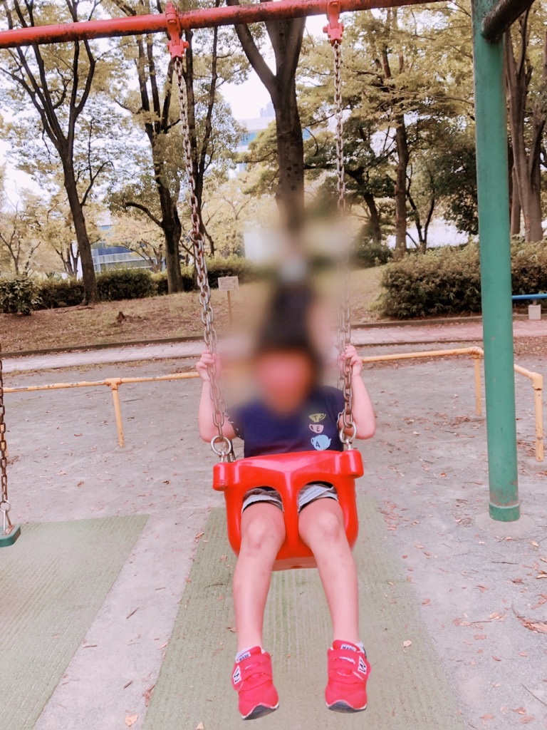 ブランコに乗ると嬉しすぎて笑いが止まらず、