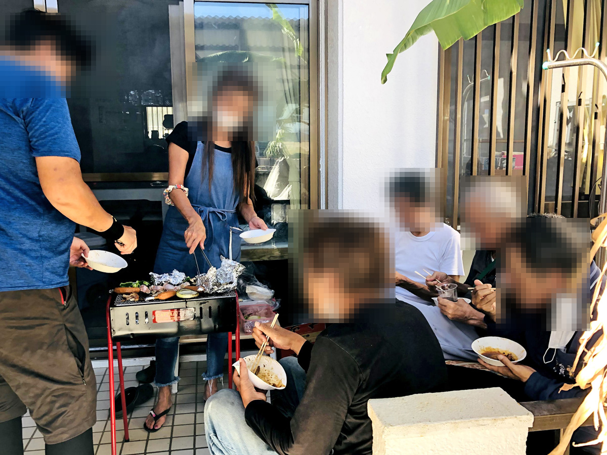 デッキでバーベキュー