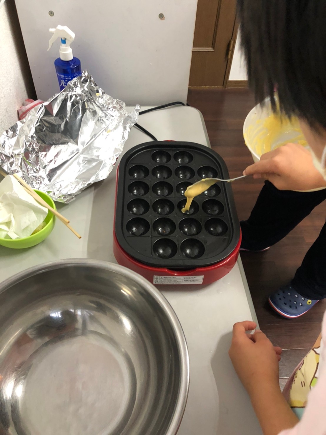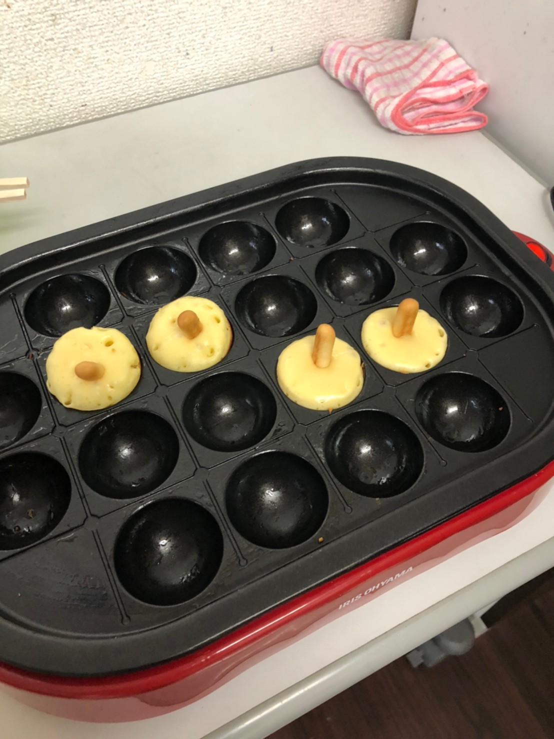 ホットケーキミックスを練ってたこ焼き用のホットプレートにイン
