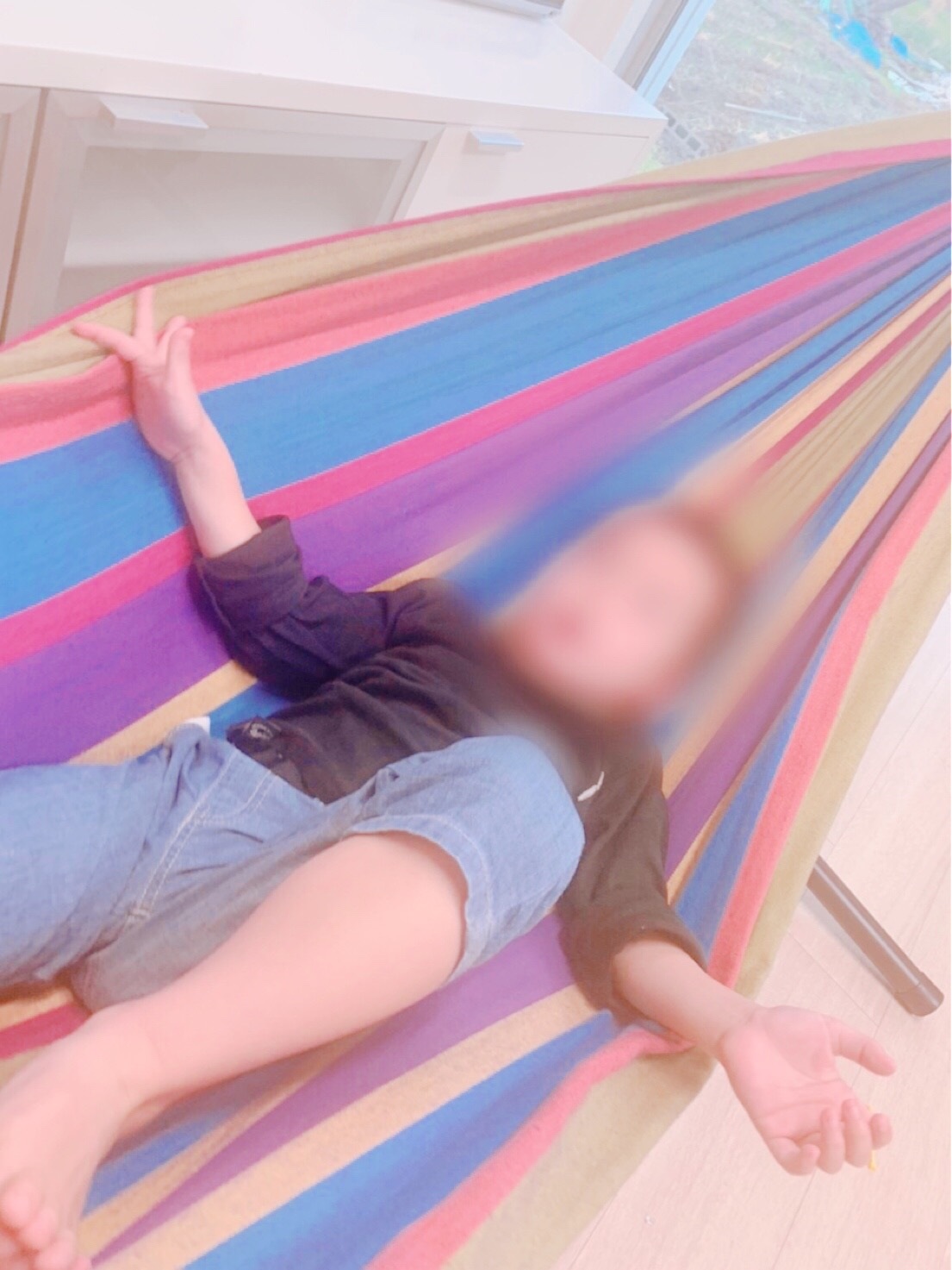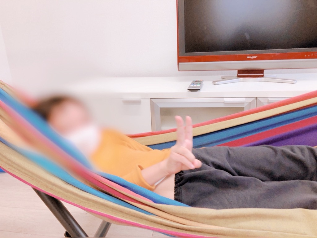 ルンルンで室内をお散歩したり、備え付けられているハンモックに揺られたりと