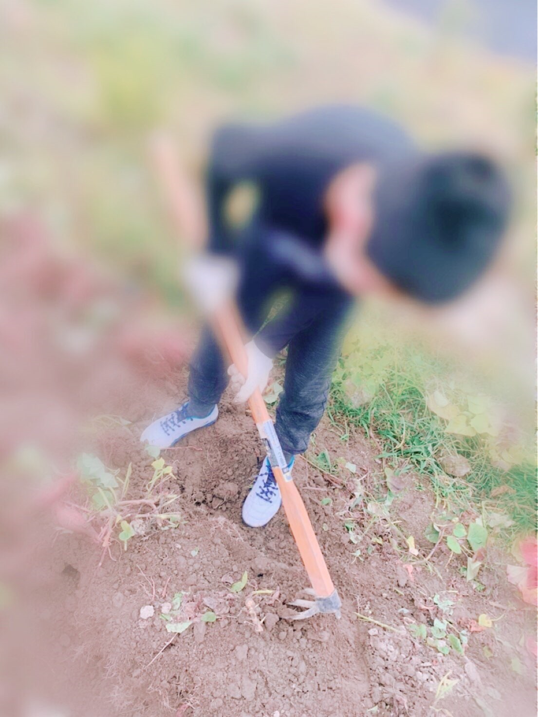 次に、スコップを持って、引っ張りやすそうなお芋のツルを探します!