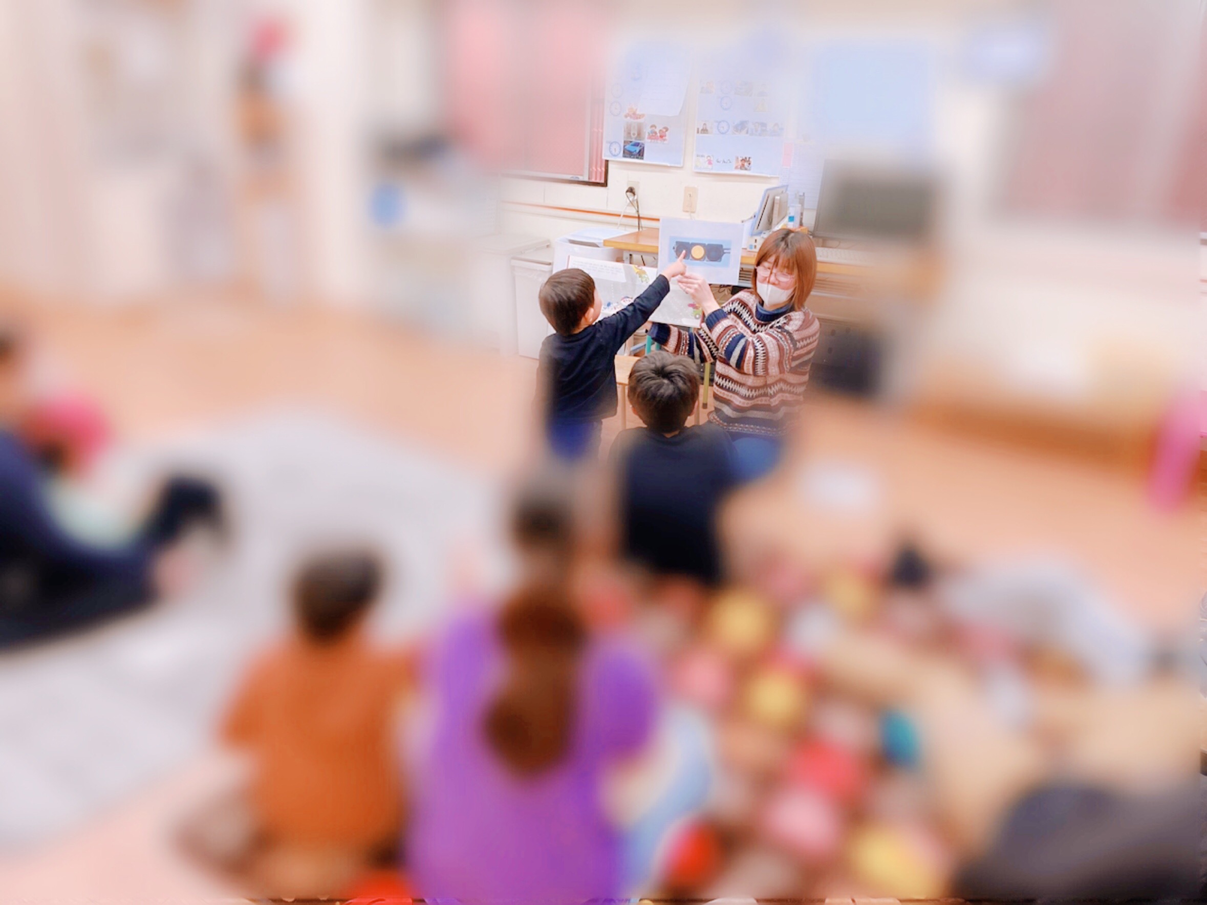 嬉しそうに指をさして、物語の中に入り込んで話を聞いていました!