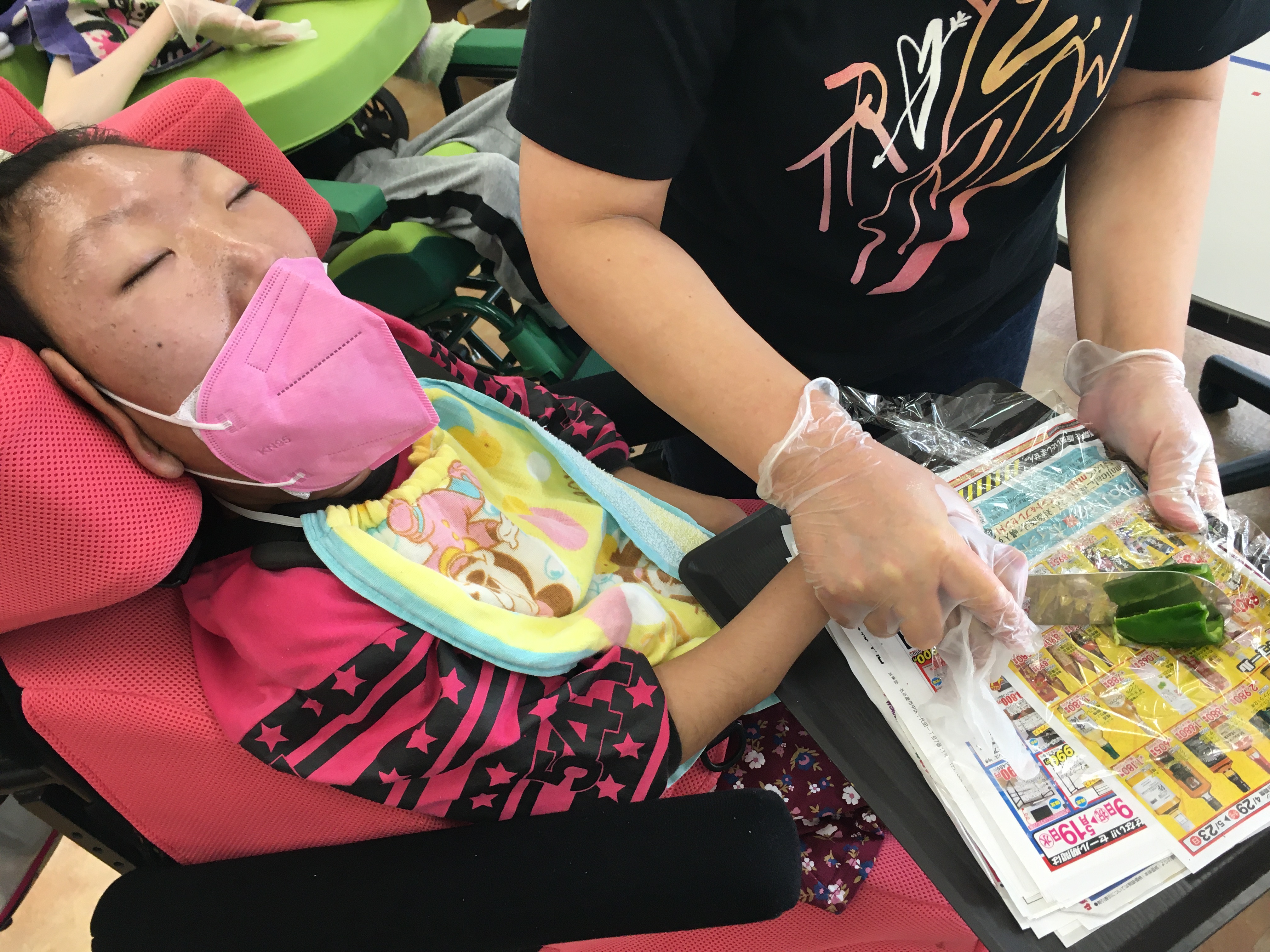 たくさんのピーマンとなすをフレンズに、大きめサイズに切ってもらいました☆