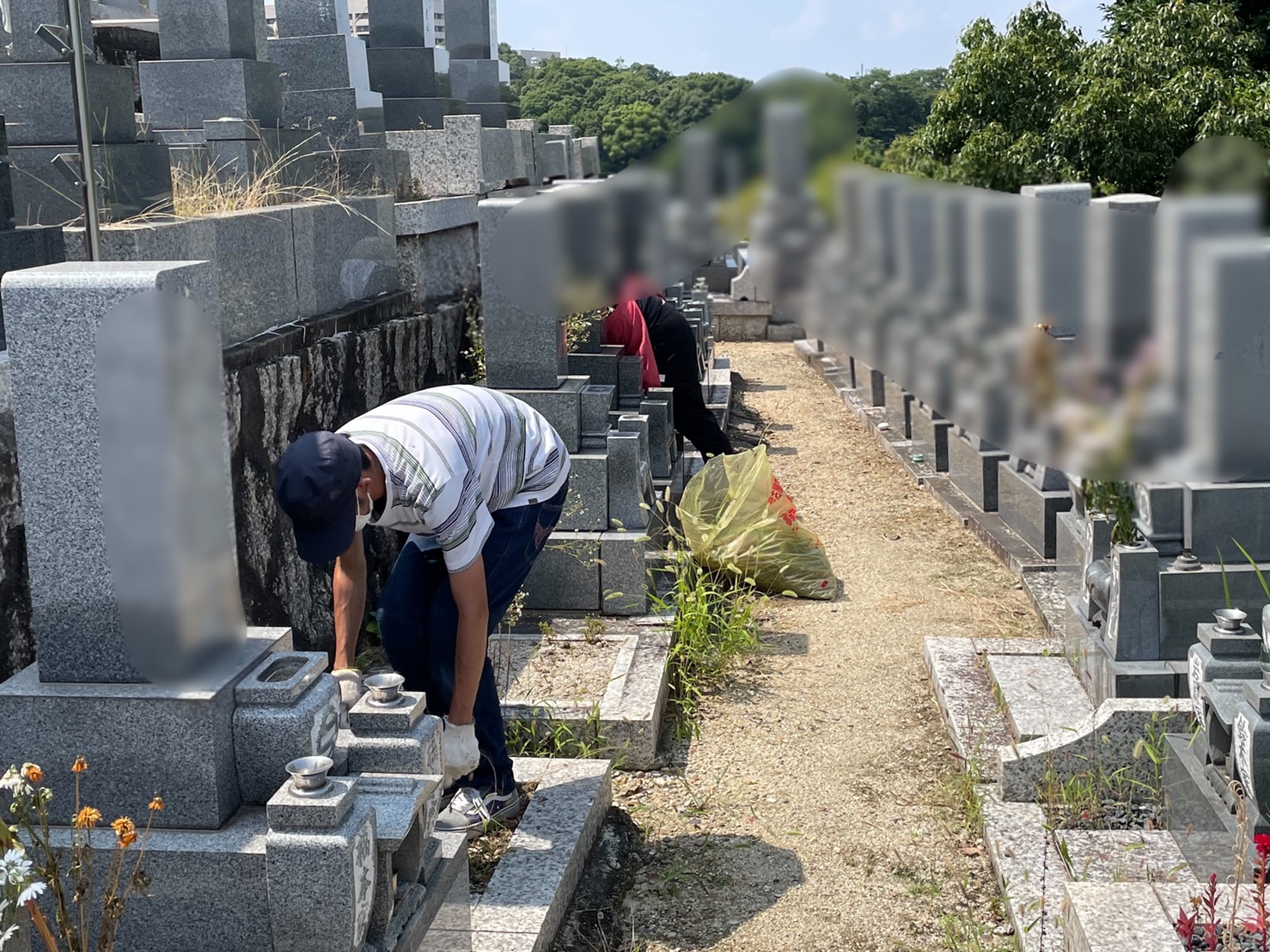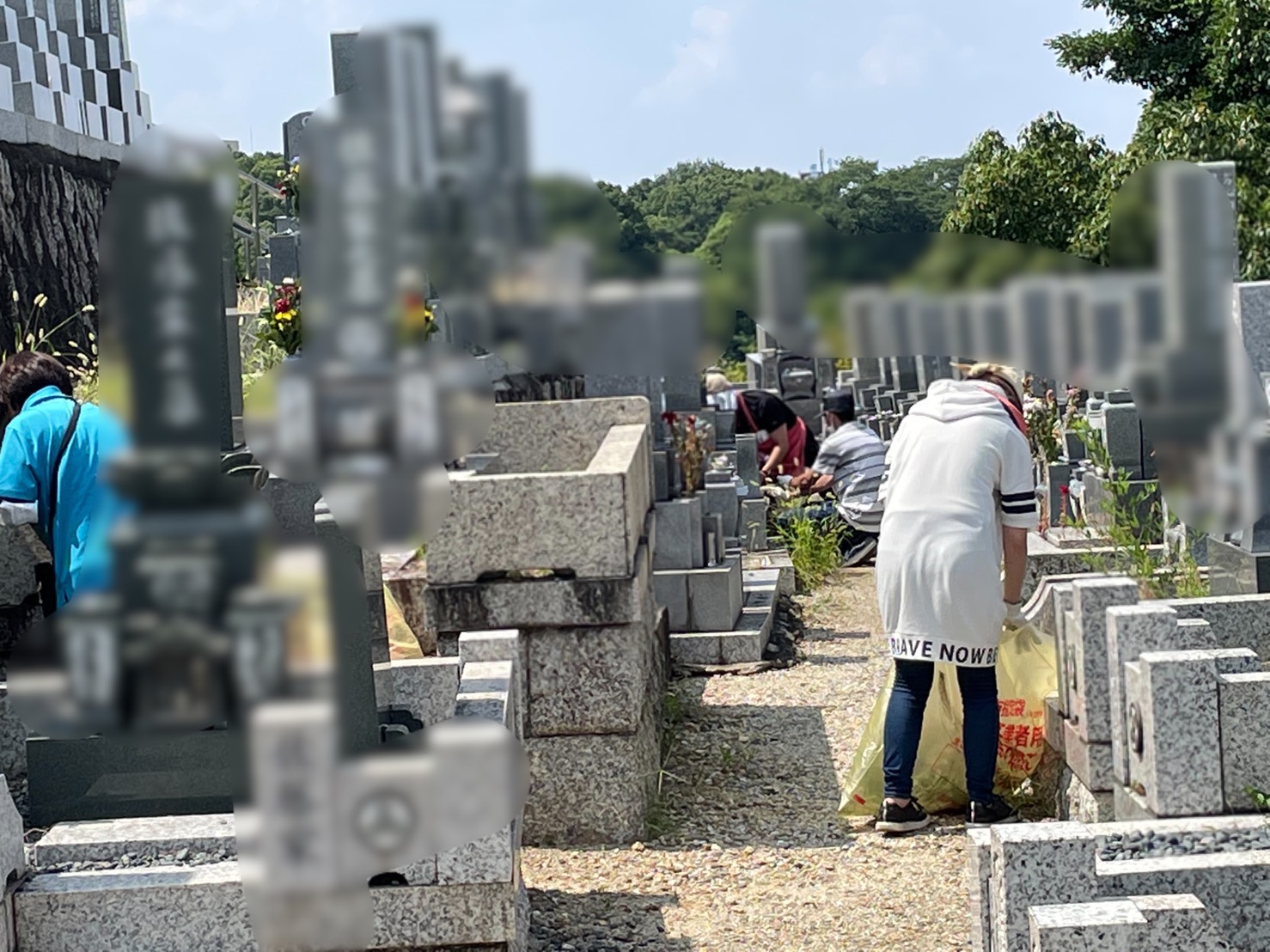 毎年お盆前のこの時期と年末前に平和公園の草むしり作業を行なっています。