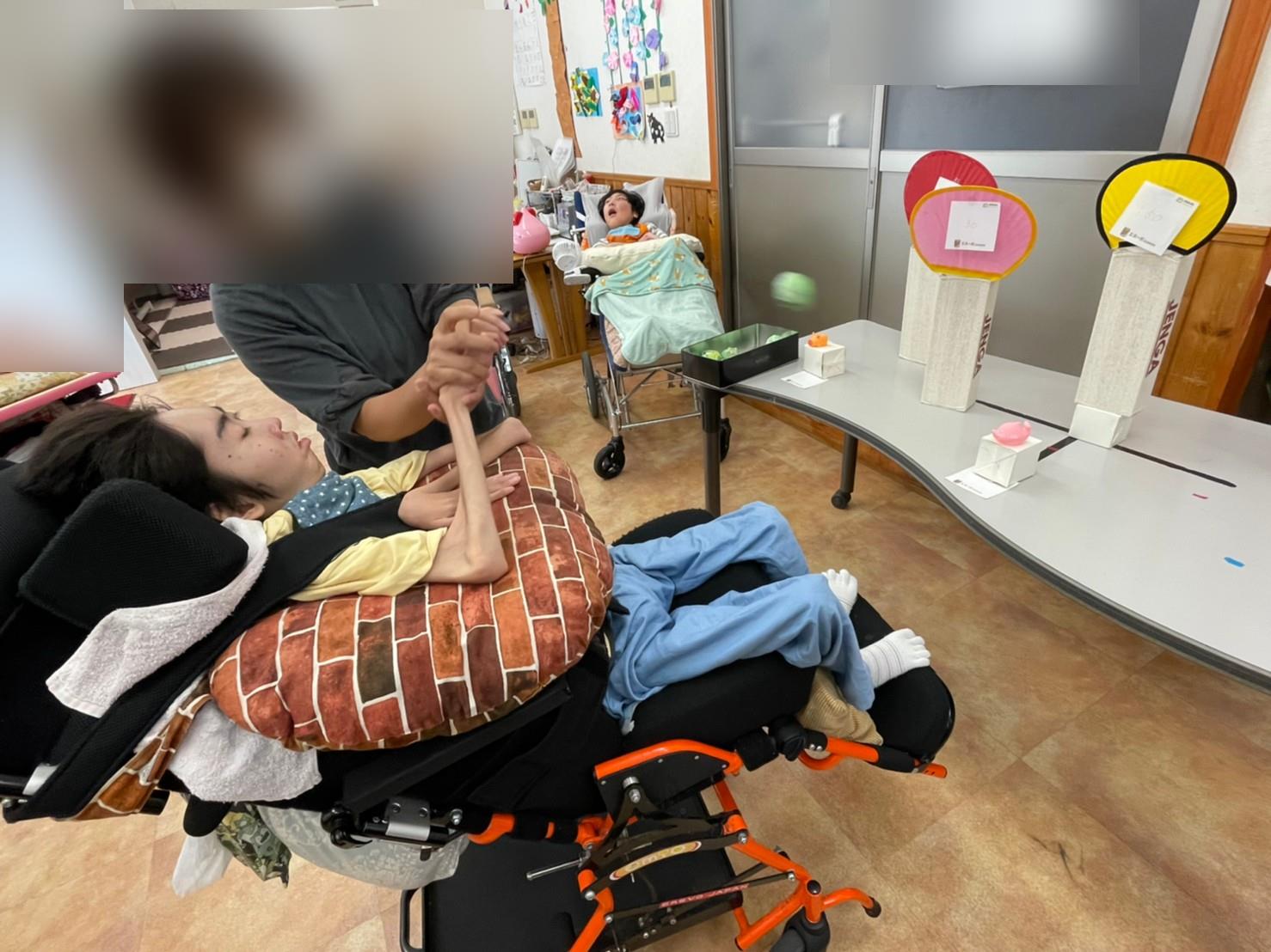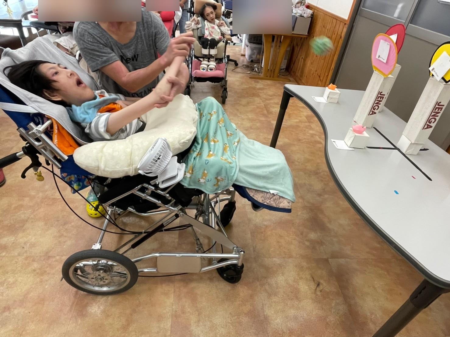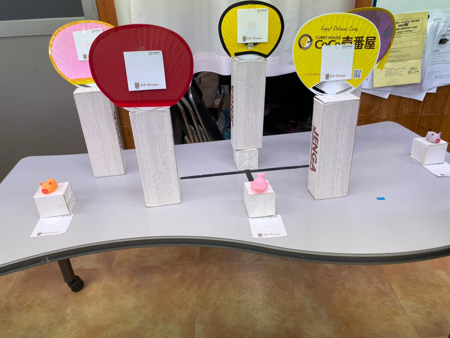 『的あて』は、ジェンガの箱にうちわを乗せて夏祭り風にアレンジしました( *´艸`)