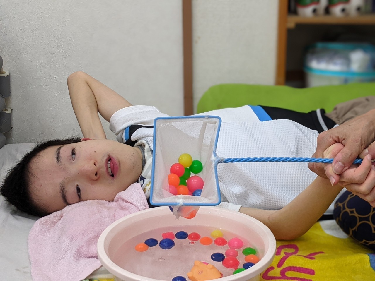 定番の『ポイ』を使ったり、おたま、網を使って起用にボールを沢山すくって貰いました☆