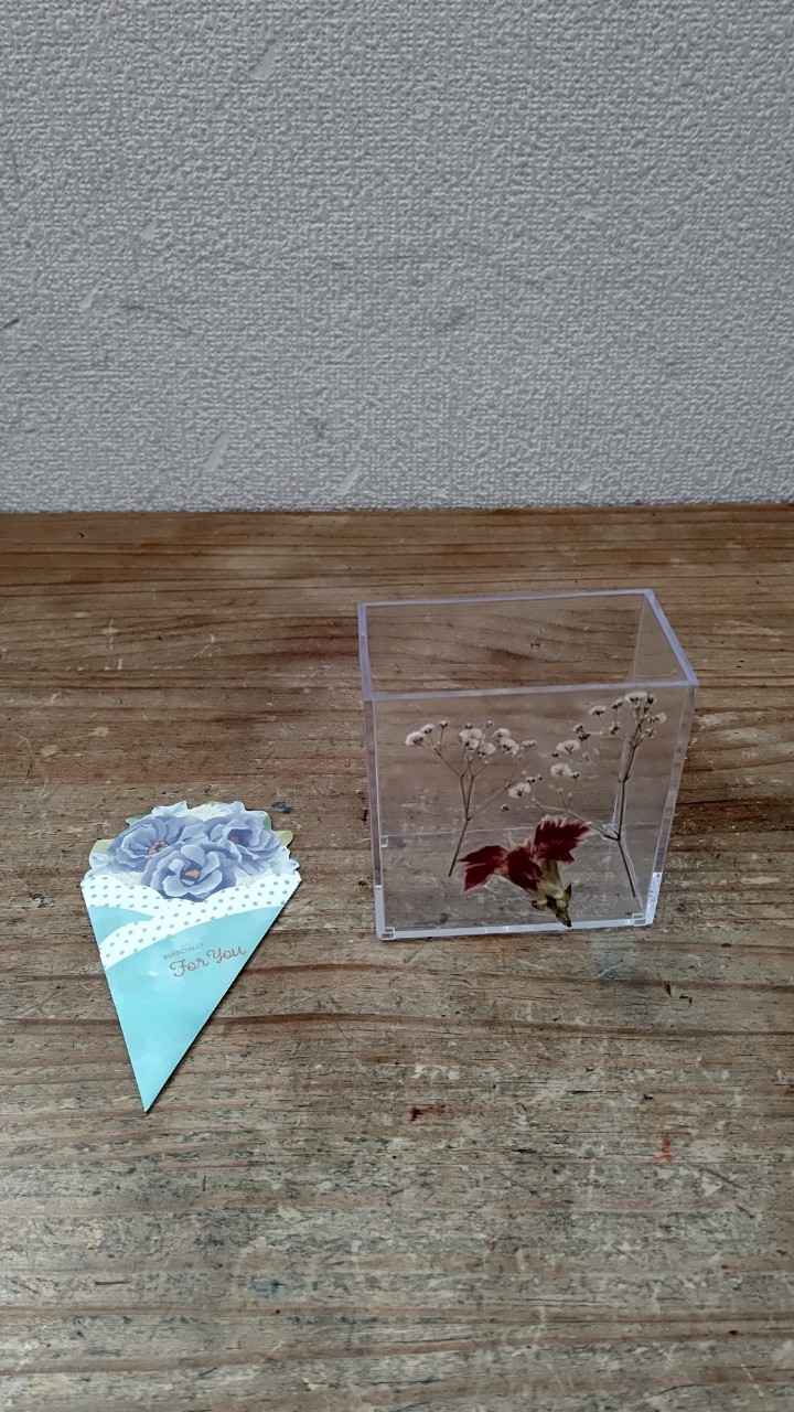花束型のメッセージカードを添えてプレゼントしました。