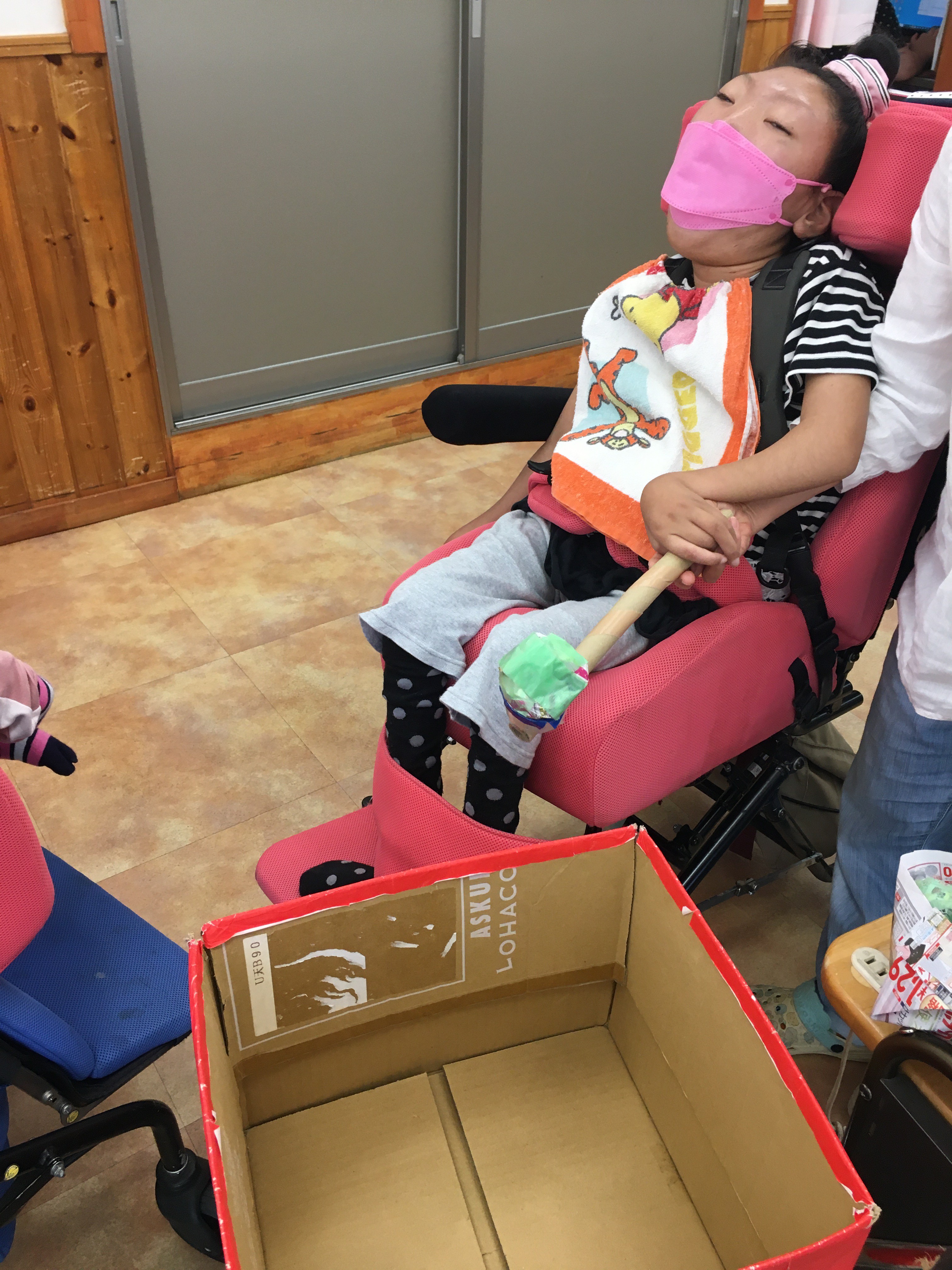 玉入れはこの箱目掛けて、入れられた玉球を競うゲームです( *´艸`)