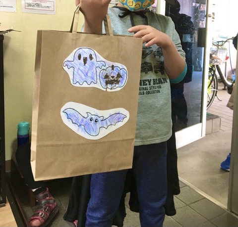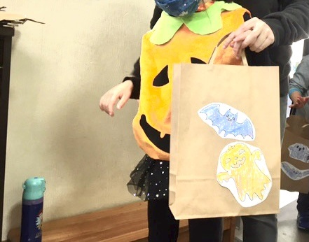 この日は、午前中にハロウィーンでお菓子を詰めて歩くバッグを作りました!