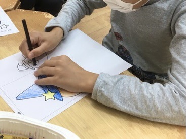 みんな真剣な様子で枠からはみ出さないように色を塗っていきます!