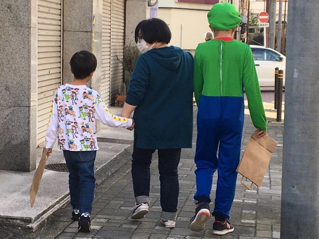 ピーターパンの近くにあるお店や、事業所の皆さんに、子どもたちが「トリックオアトリート!」と声をかけると、