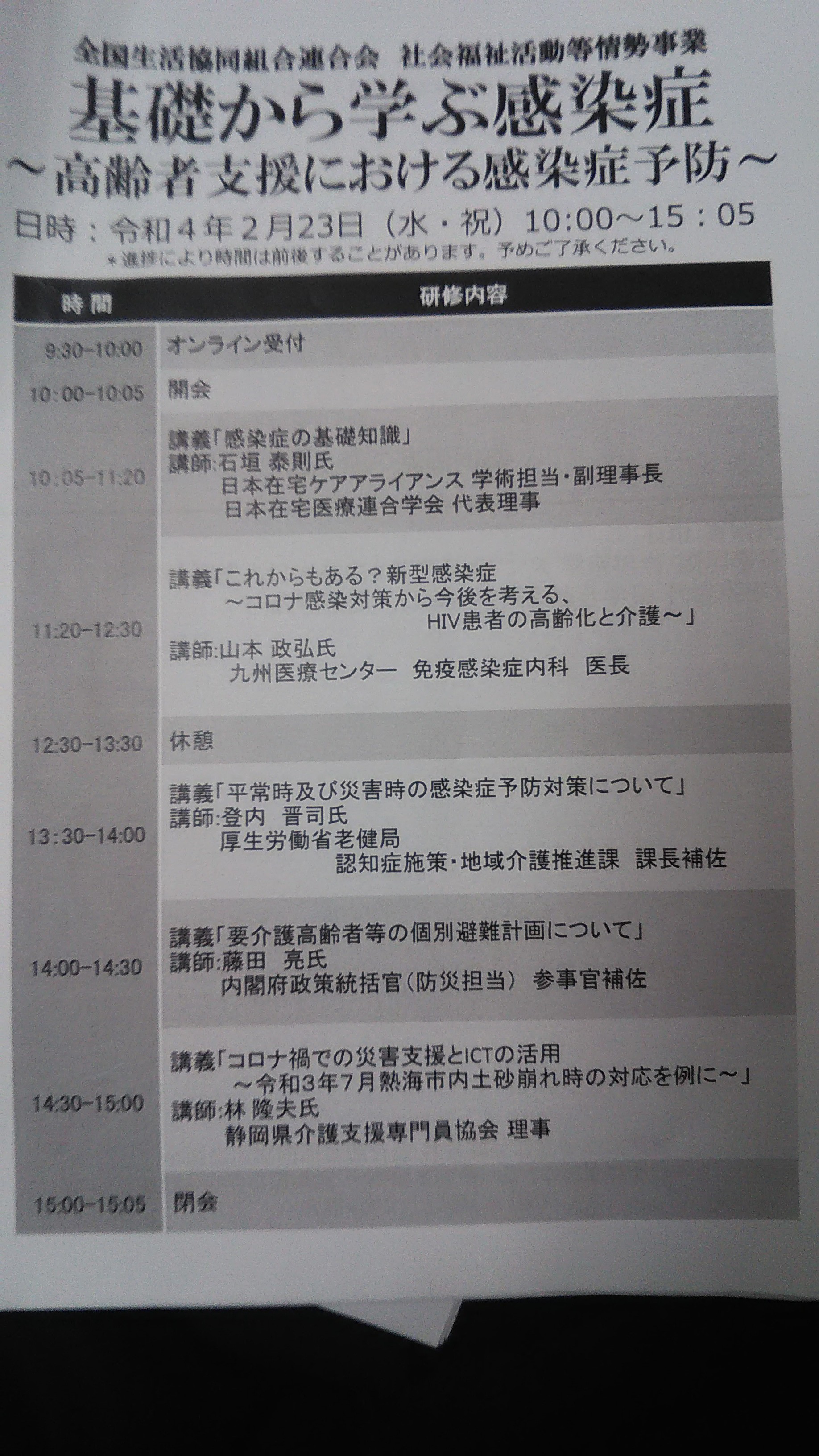 何とか、感染をおさえることができないかと研修に参加しました。