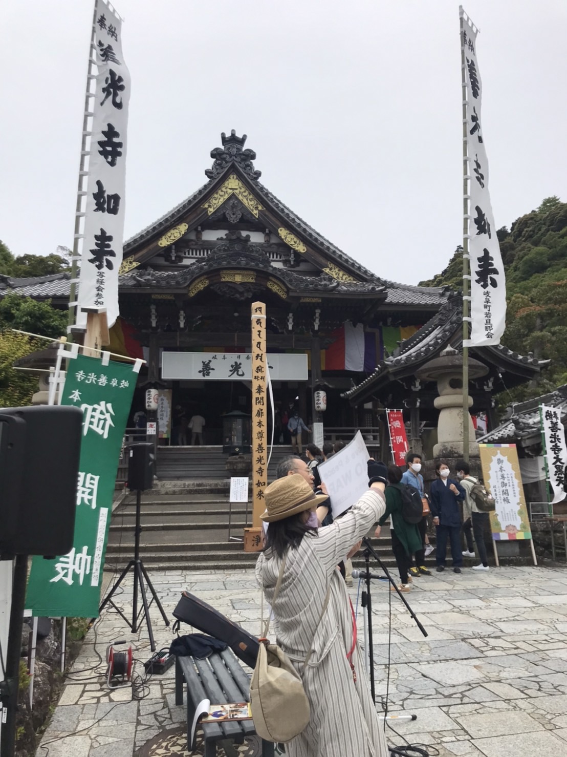 善光寺は、お祭りのようでフリーマーケットや出店、コンサートもしてました。人が多く二人で圧倒されました。1652675742953