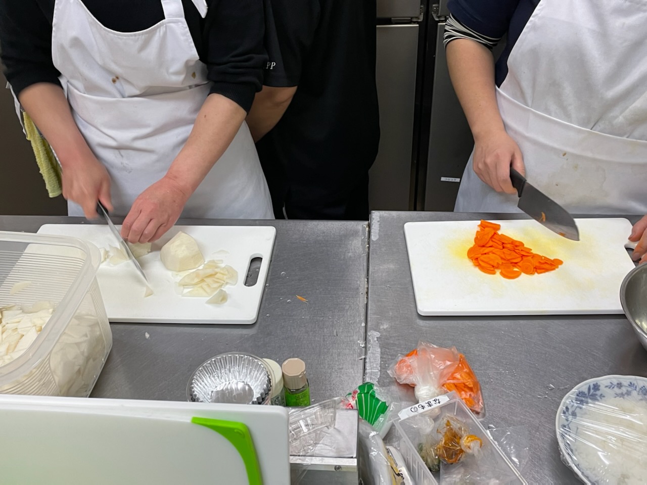 怪我には気を付けて材料切りを行っています。リズムよく切られていました🔪🥕
