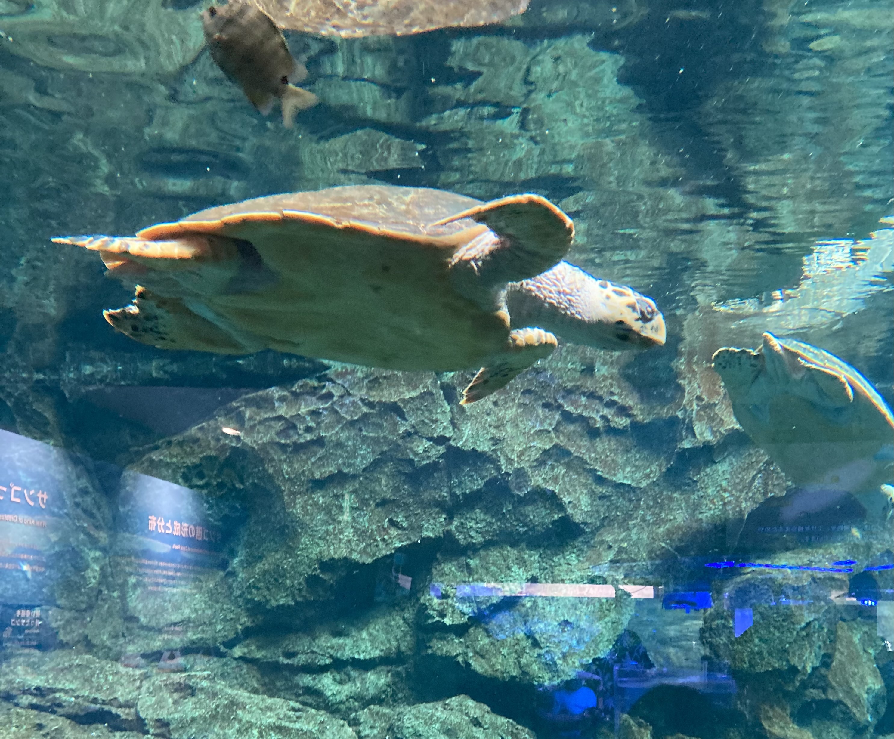 ホーム > 夢愛ケア > 5月 余暇支援➂ 2022/05/22 こんにちは夢愛ケアの鈴木です。 5月になり過ごしやすくなりました。 今回は定番の水族館に行って参りました。 これはクラゲの展示、見ていて落ち着きます。 大きなカメが泳いでます。浦島太郎みたいに乗れそうです。 定番のペンギンコーナーです。別世界にいるようです。 興味ない方は素通りされますが、一緒に行かれた ご利用者様はじっと見ていられていました。 きっと、落ち着く空間なのでしょうね。 - 夢愛ケア
