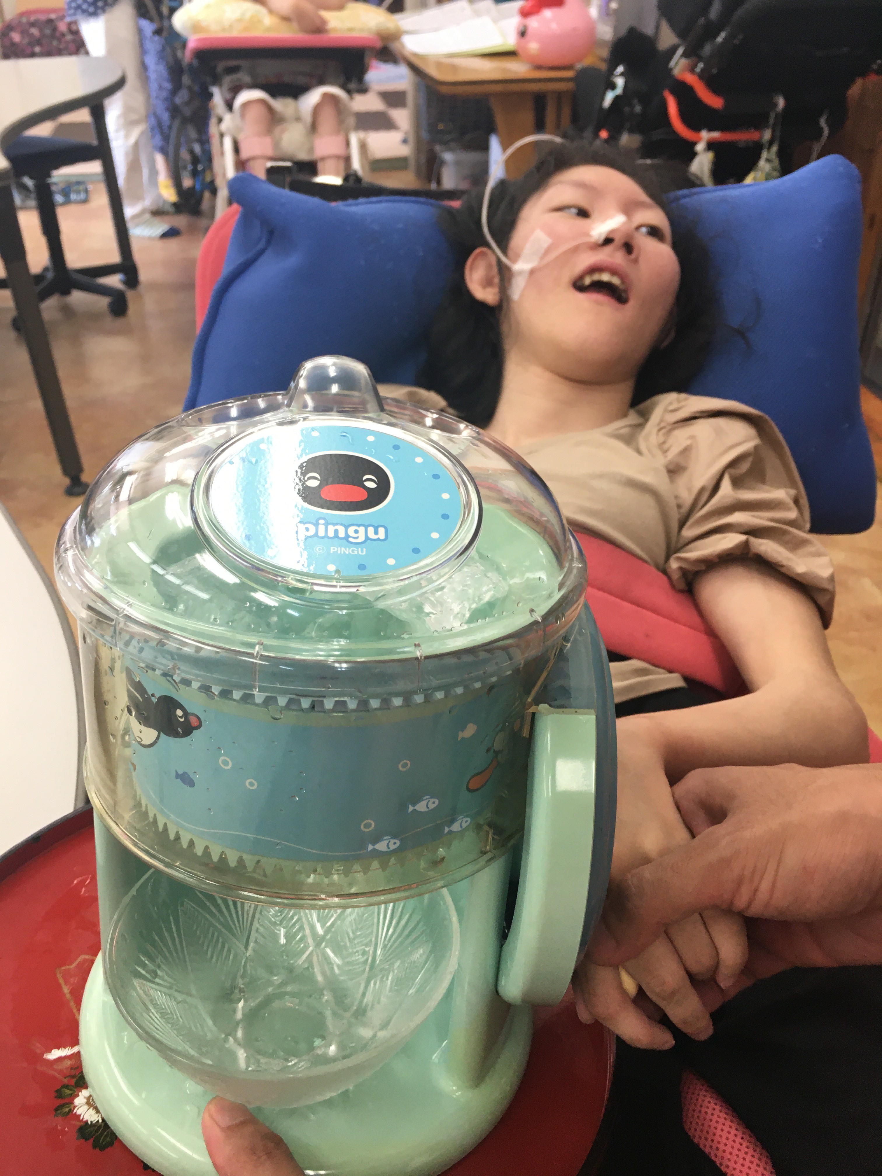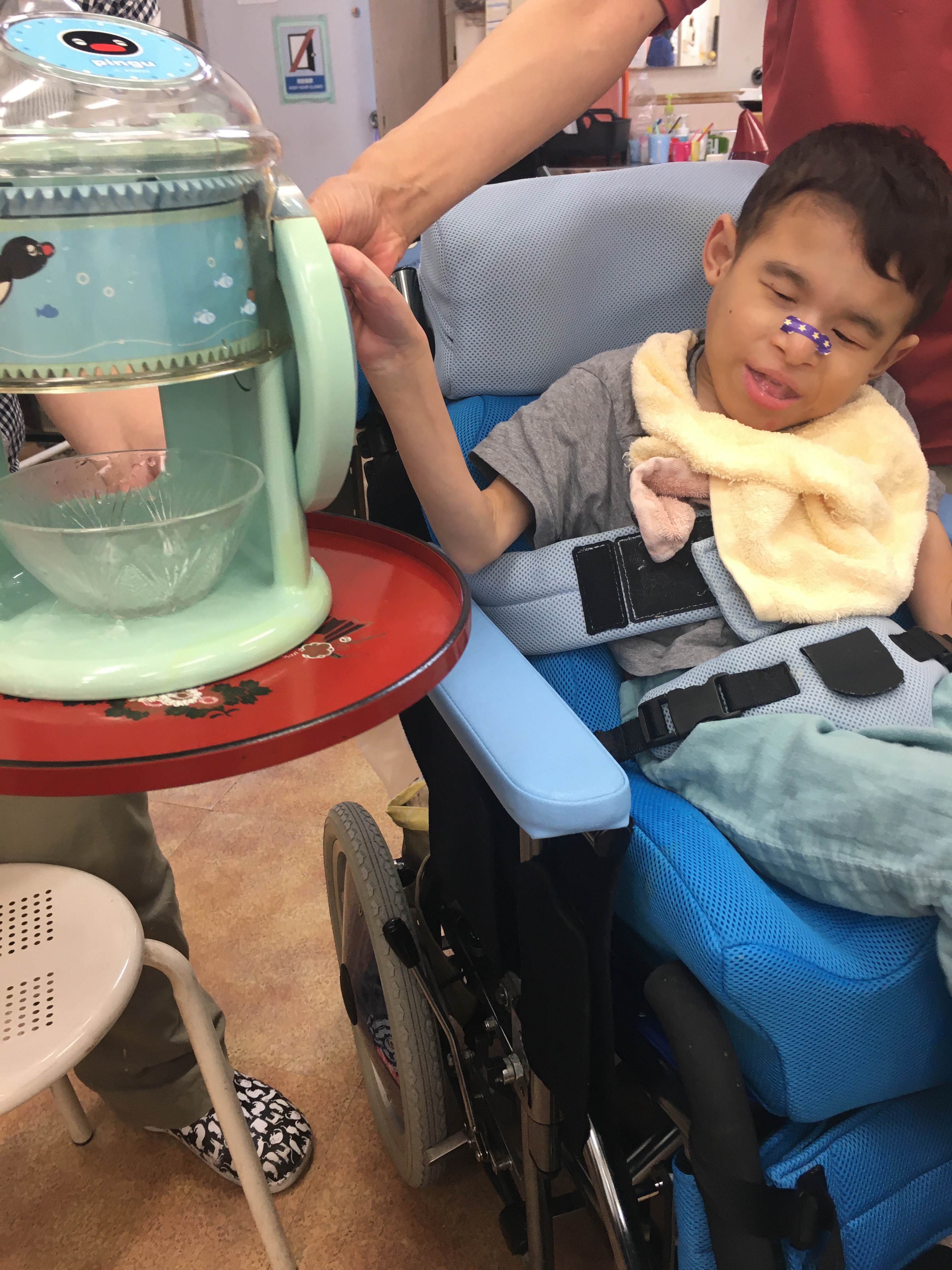 削った氷にみつをかけ、それぞれ好きな味を楽しみました!!