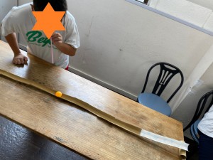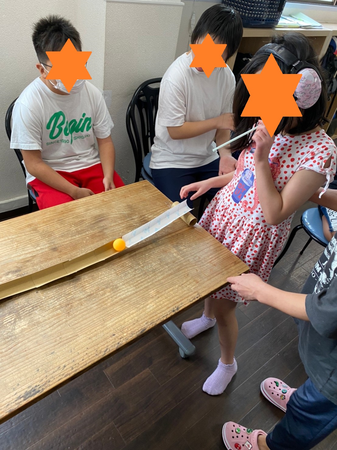 さて、トムソーヤではレクリエーションでストローレースを行いました。ピンポン玉をストローで吹いてレール上を転がすゲーム。