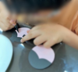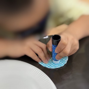 カップから糊がはみ出さないように、集中しながら丁寧に塗っていきます!
