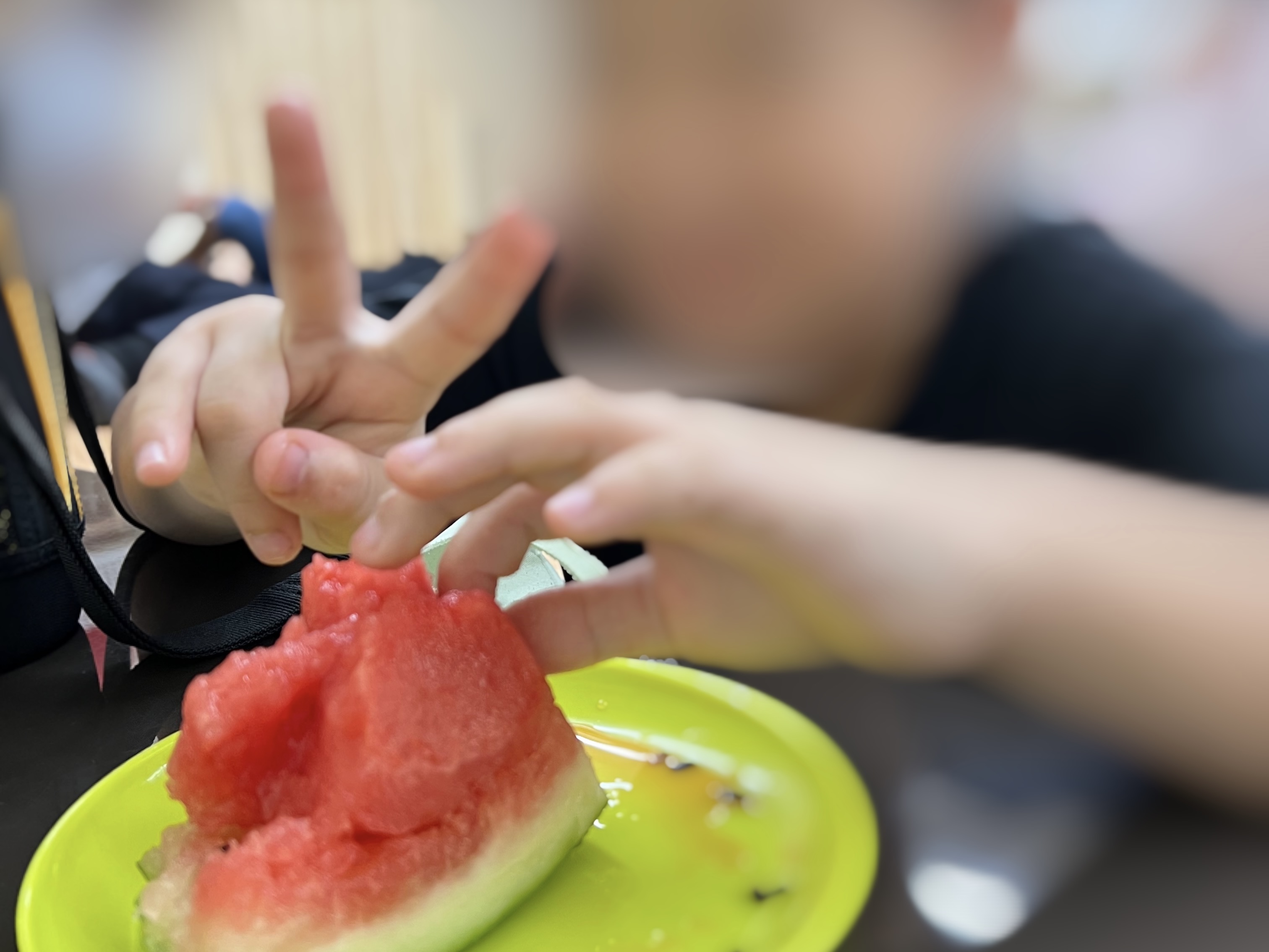 綺麗に割れたスイカをおやつに食べて、満足そうな子どもたちでした☆