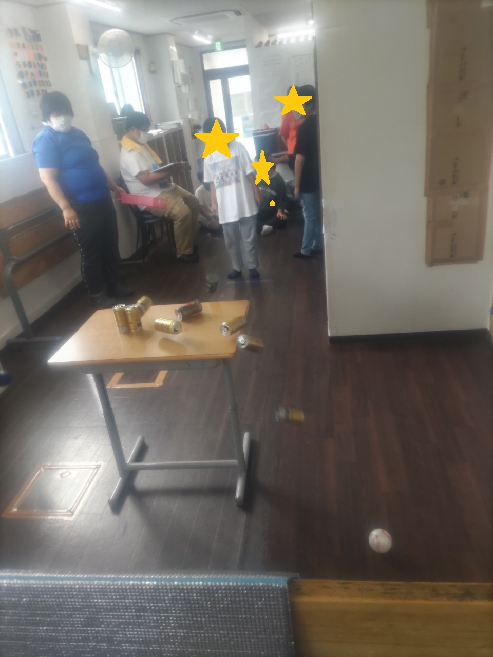 レク後にも、友達同士で仲良く「缶倒し」をして、遊ぶ姿が見られ嬉しく思いました。