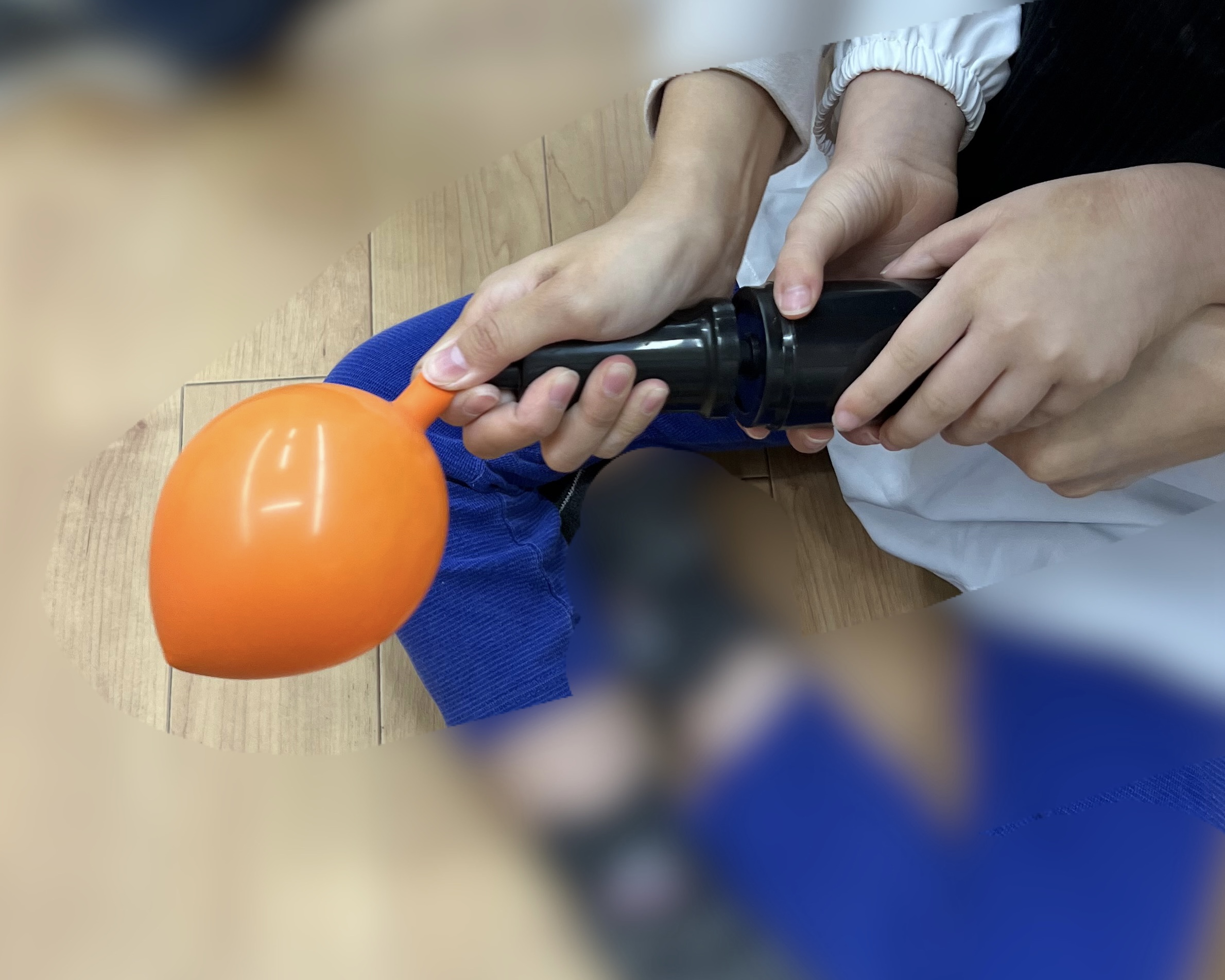 スタッフと協力をして一生懸命膨らませます!