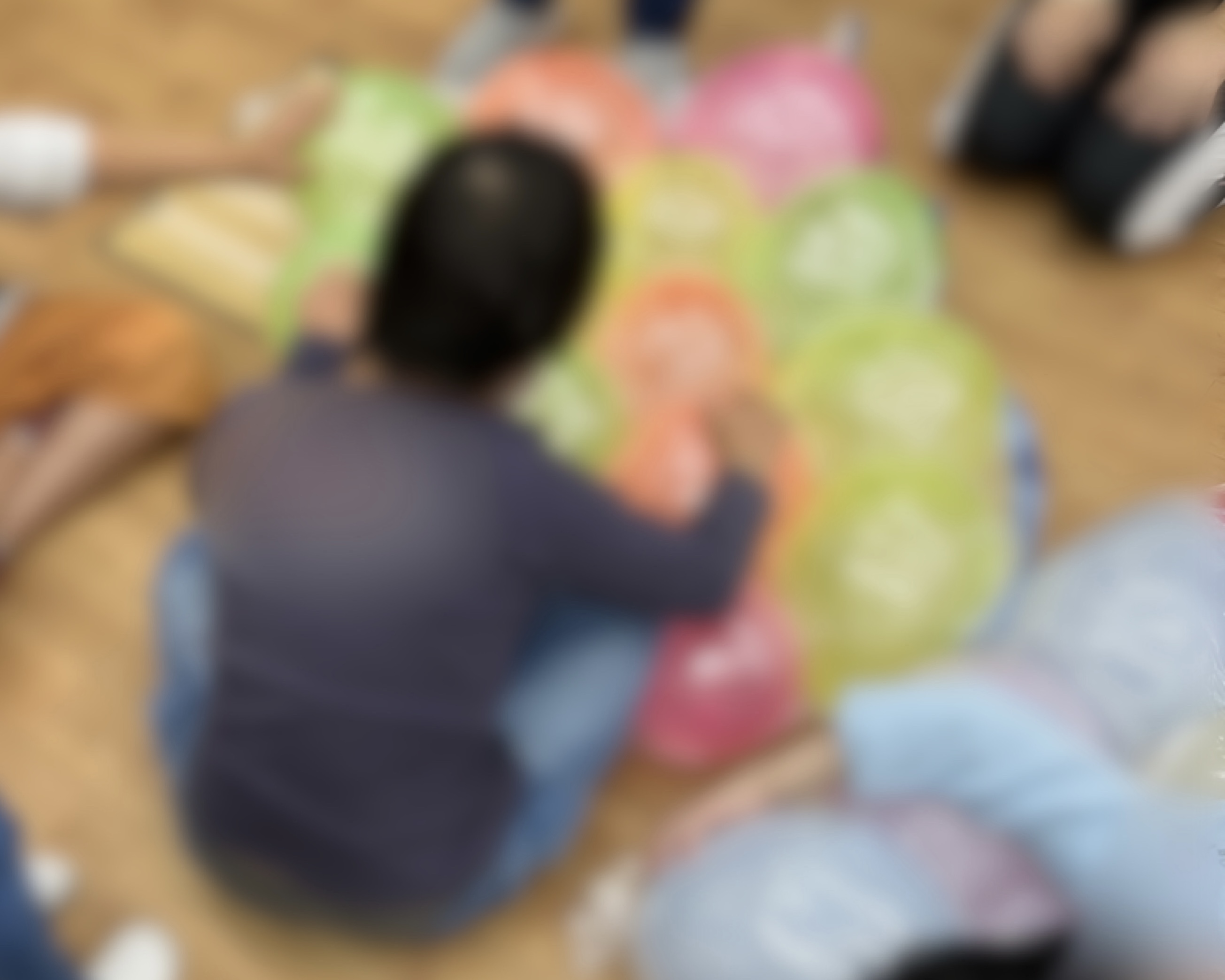 そんな元気いっぱいのみんなと、レクリエーションの時間にバルーンマット作りに挑戦しました!