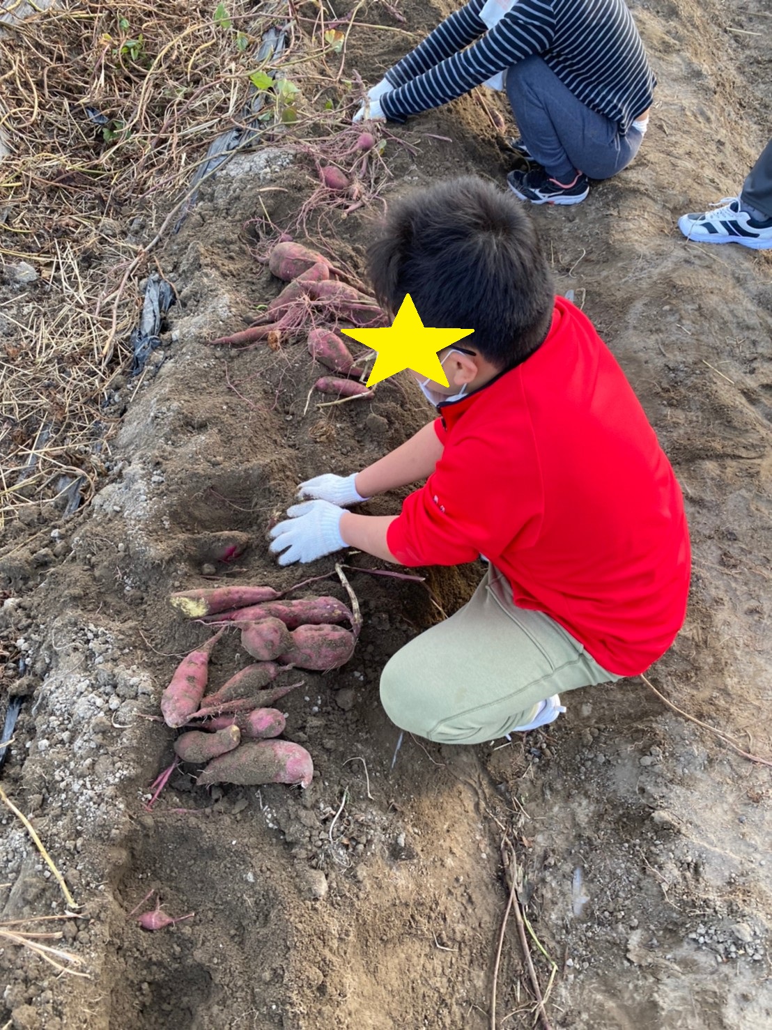 土の感触を楽しんだり、積極的に芋を掘ったりしていました。