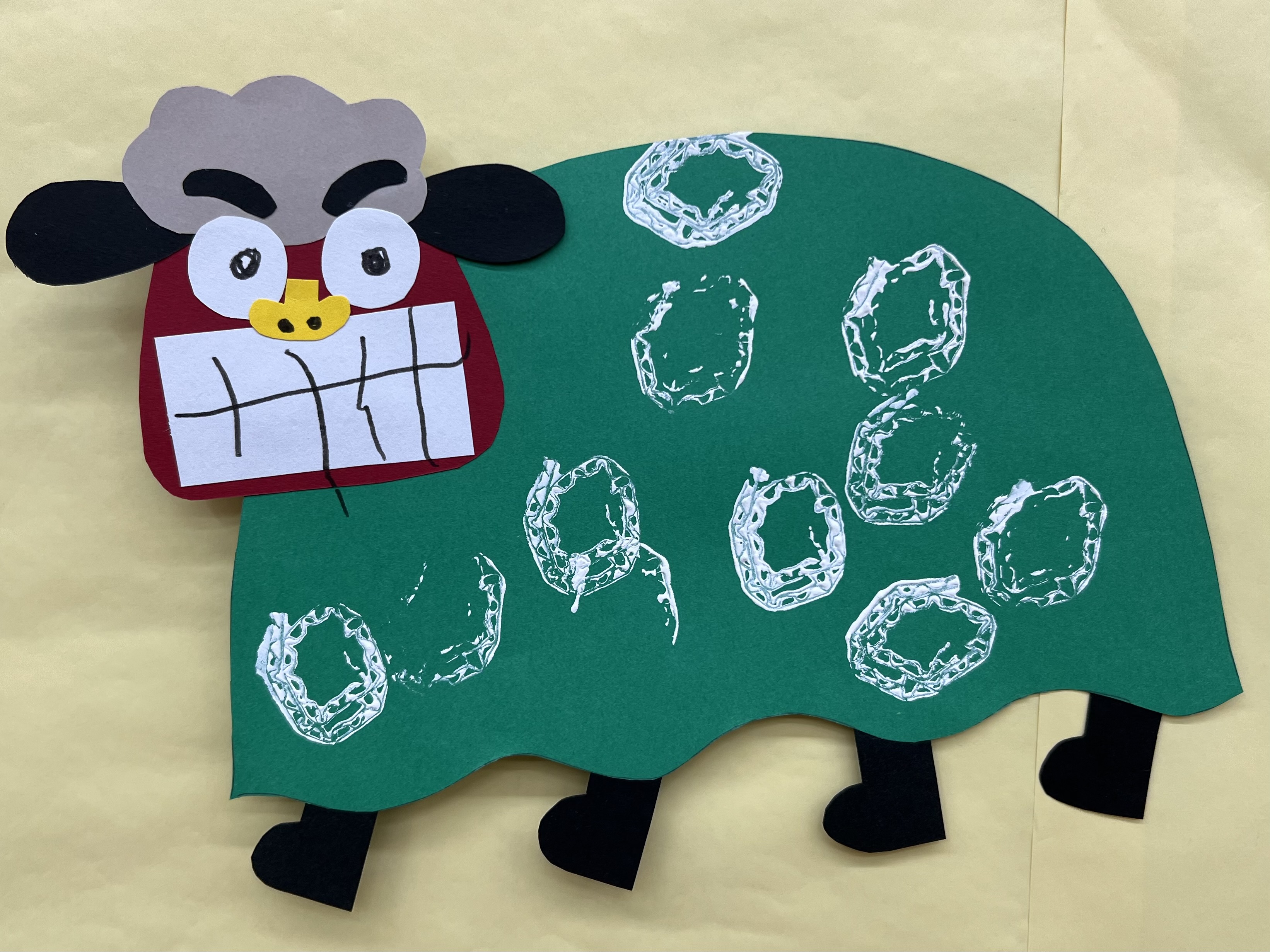獅子舞製作では、段ボールを丸めて作ったスタンプで模様を表現しました♪