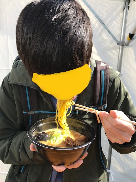 ラーメンを購入すると嬉しそうに食べてスープも一滴も残さずに完食されています。