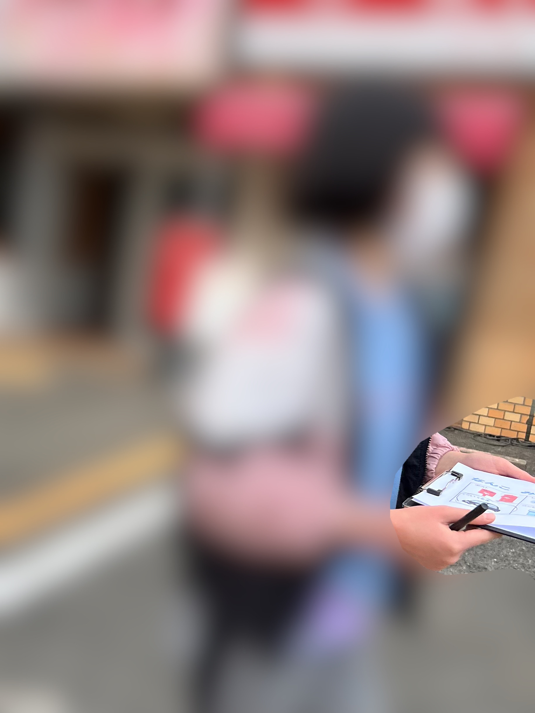 外に出て、交通ルールに気を付けながらよく周りを見て探す子どもたち。