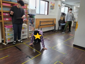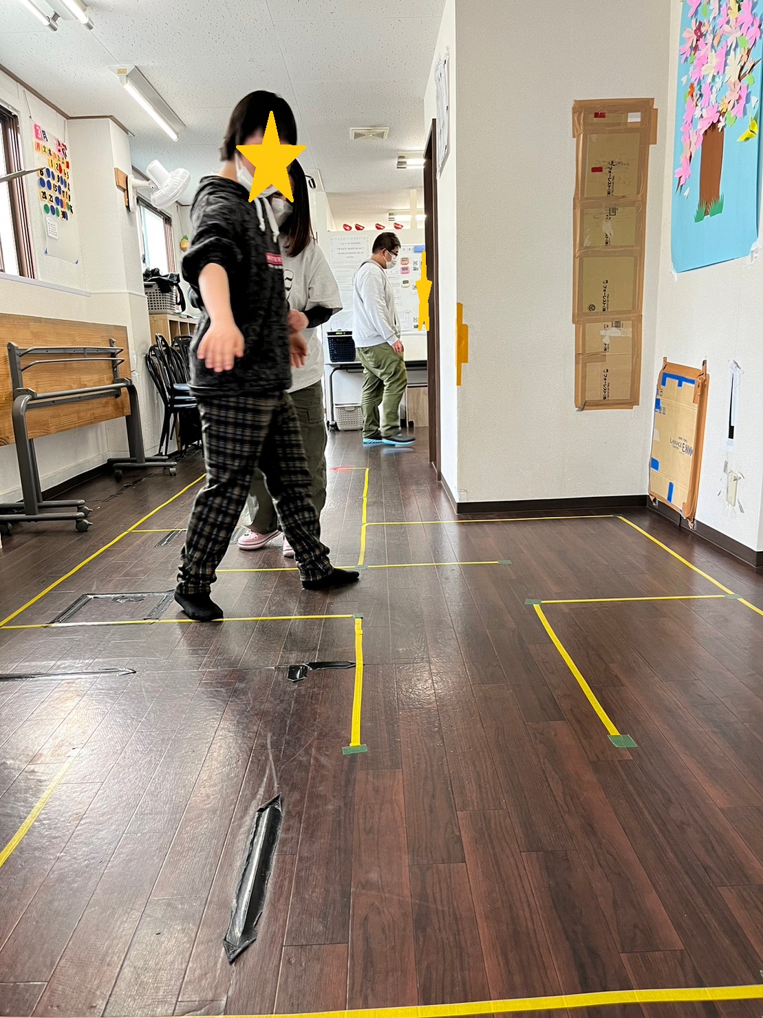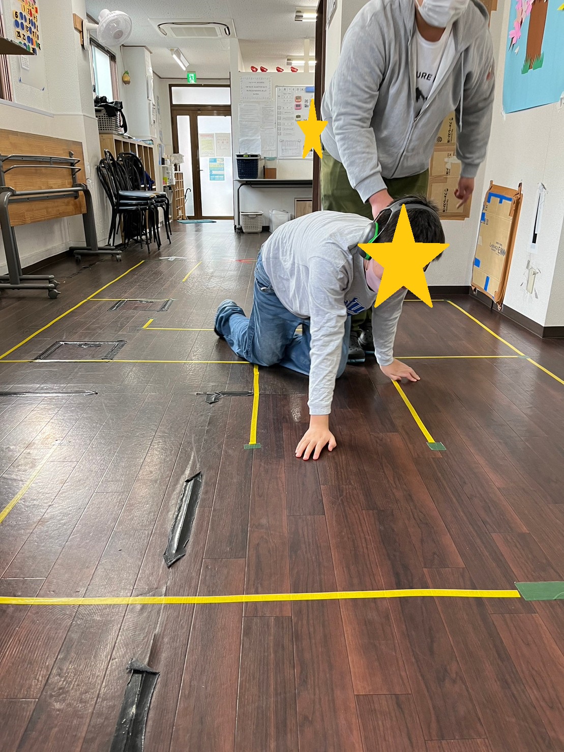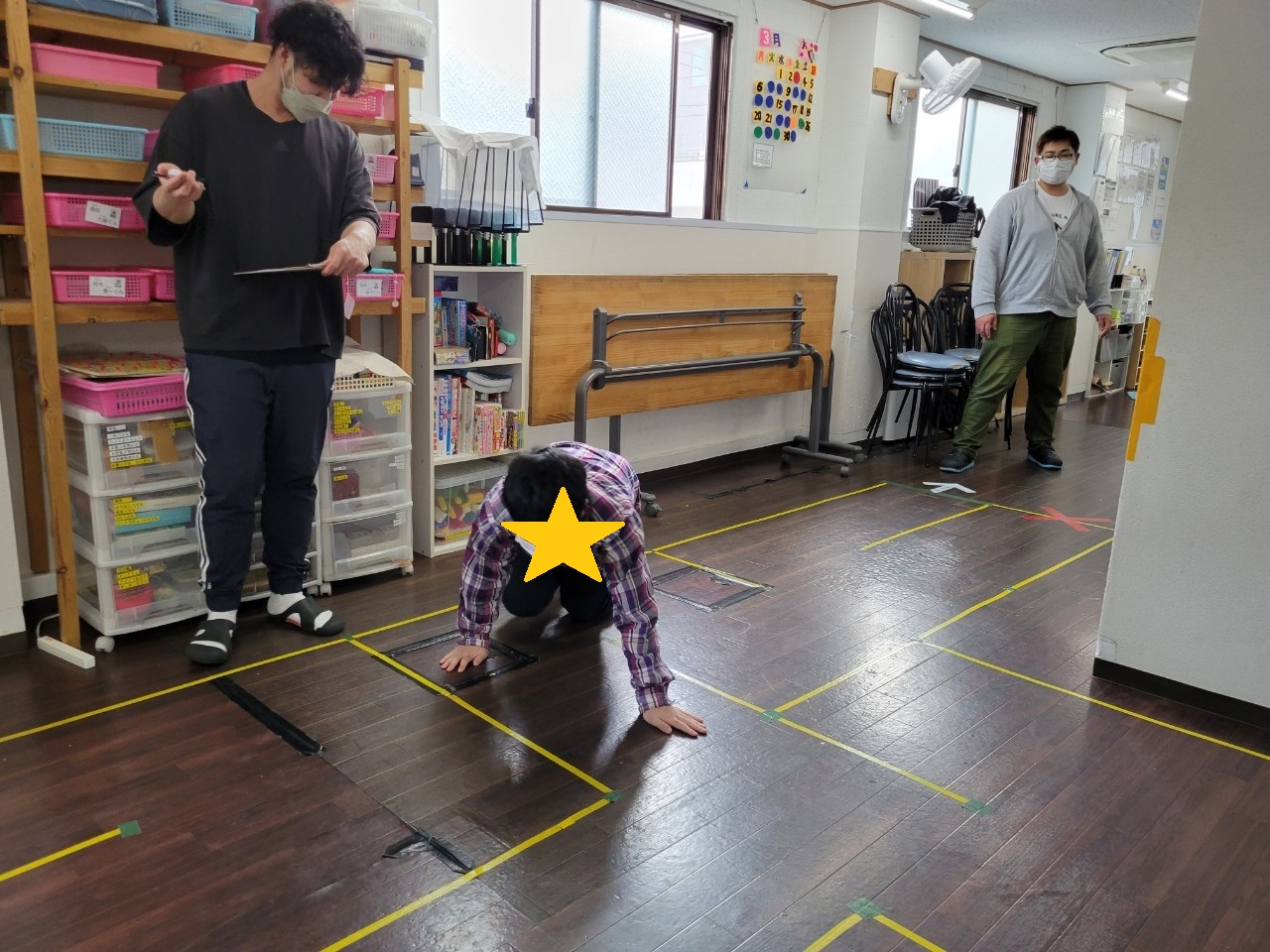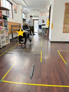 床にビニールテープで巨大迷路を作り、それをハイハイして、