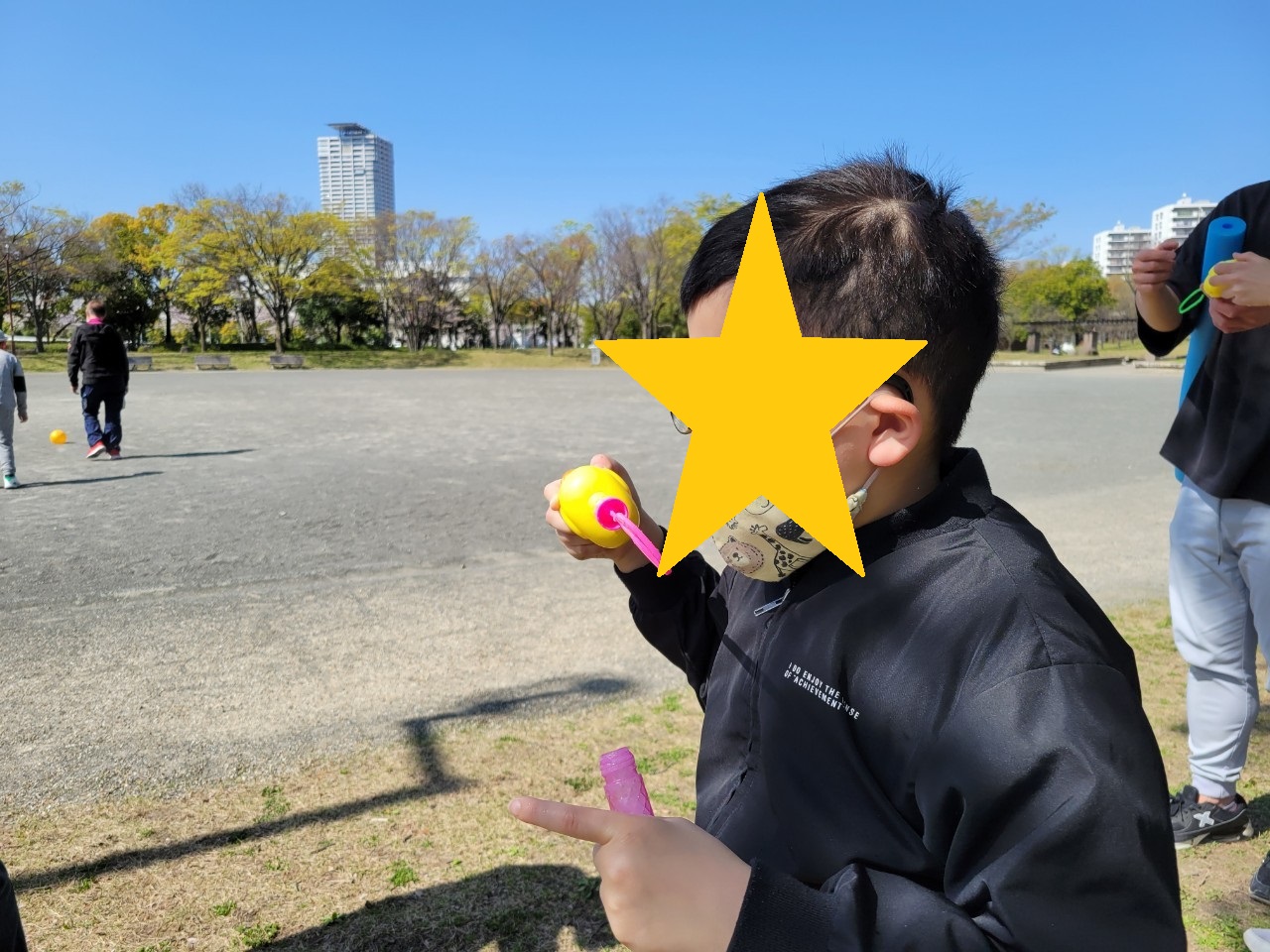 29日水曜日は、神宮東公園で。サッカー・野球・縄跳び・シャボン玉などをして遊びました。