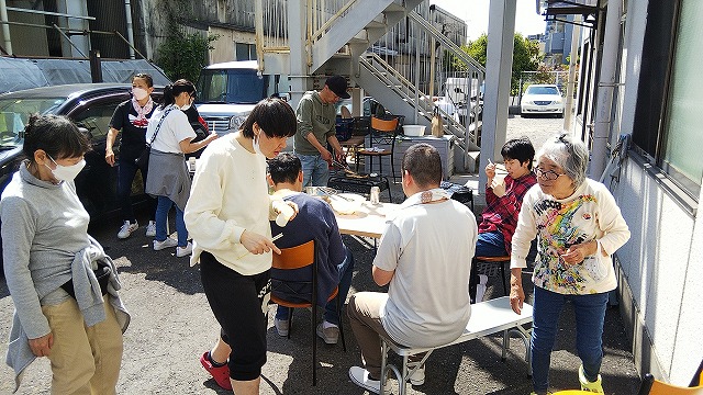 ココロ 5/12の金曜日、ココロではBBQを行い利用者様に昼食のおかずの追加の品として…またおやつにはフランクフルトを提供させて頂きました。 一応今回も安全面に配慮し、ご家族様の参加はご遠慮していただき、昼食のおかずに追加するという方法で行いました。 食材等は数日前から買い出し等の準備を行い、朝の送迎時間中に残りの職員が炭に火をいれて焼きの準備に入ります。 利用者様の数が多いので、どんどん焼かないと追いつかない状態で…日中活動中も管理者自ら調理に励んでました。 DSC_1622   イベント担当者も久しぶりの担当の作業に気合いが入ってます! 12932煙がぁ~(>_<)   昼食も終わって一段落と思いきや、「美味しい!もっと食べたい!」という利用者さんが大勢居たため、急遽追加で順番にご賞味していただきました。 昼食時も結構食べてたと思うんだけど…年に1回だし、ま、いいかな(笑)。 あ、食事量制限されてる方もみえる為、主食を減らして提供させていただいた利用者さんは追加は無しですよ。ごめんね。 DSC_1627DSC_1628 暑い中、焼き担当の職員さん。お疲れ様でした。