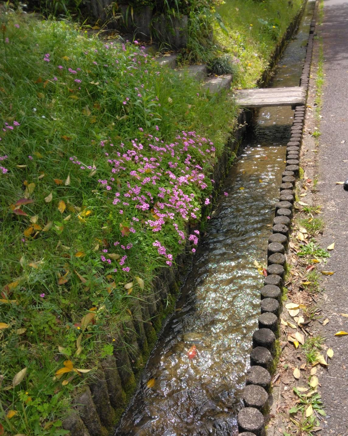 バス停東谷橋~フルーツパークまで歩いているとワインが試飲できますよという民家があったり、あぜ道では湧水が流れていたりと風情を感じます。