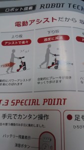 ・移動支援 歩行器が、上り坂などは軽い力で動き、下り坂はブレーキが掛かるもので、人間が操作してアシストするものではないもの。