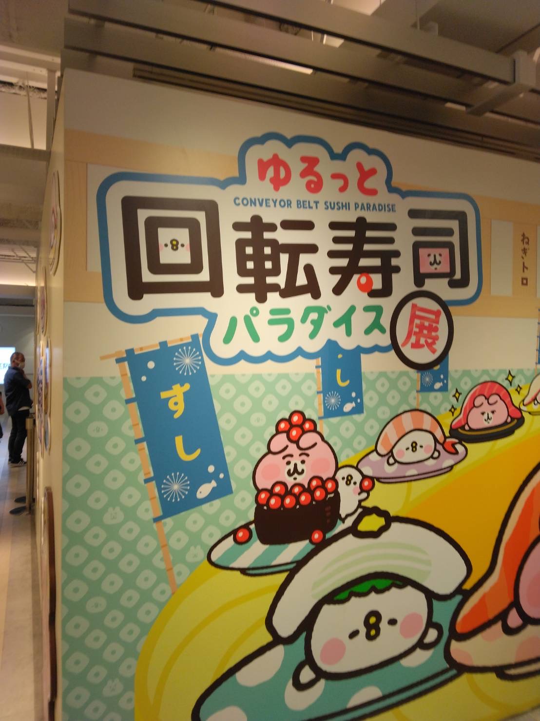 中に入ると本物の回転寿司のレーンにお寿司のキャラクターが回っています。まあ~可愛いことと感心しながら、次のコーナーへ。