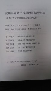 日本介護支援専門員協会愛知支部の総会及び研修に参加しました。