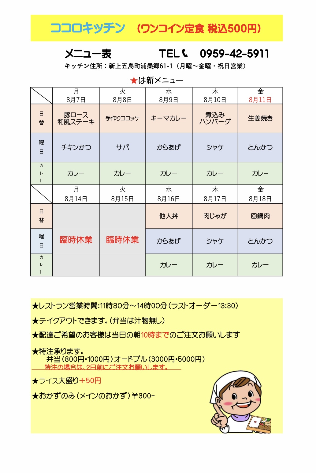 8月7日〜8月18日のメニュー