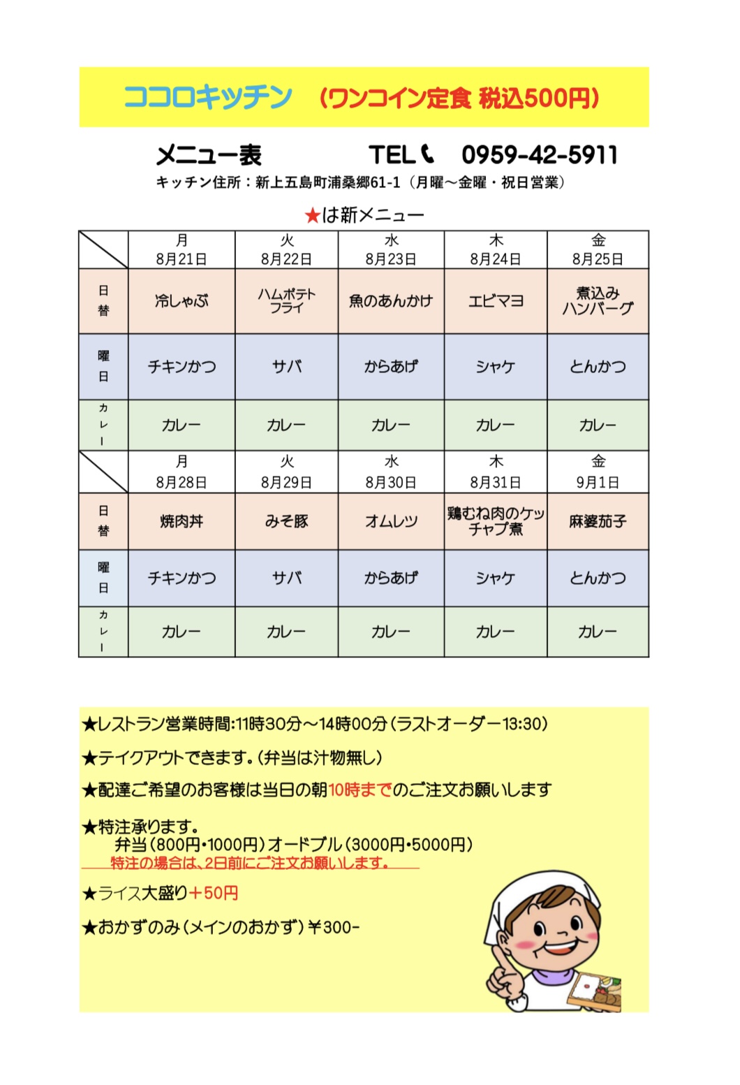 8月21日〜9月1日のメニュー