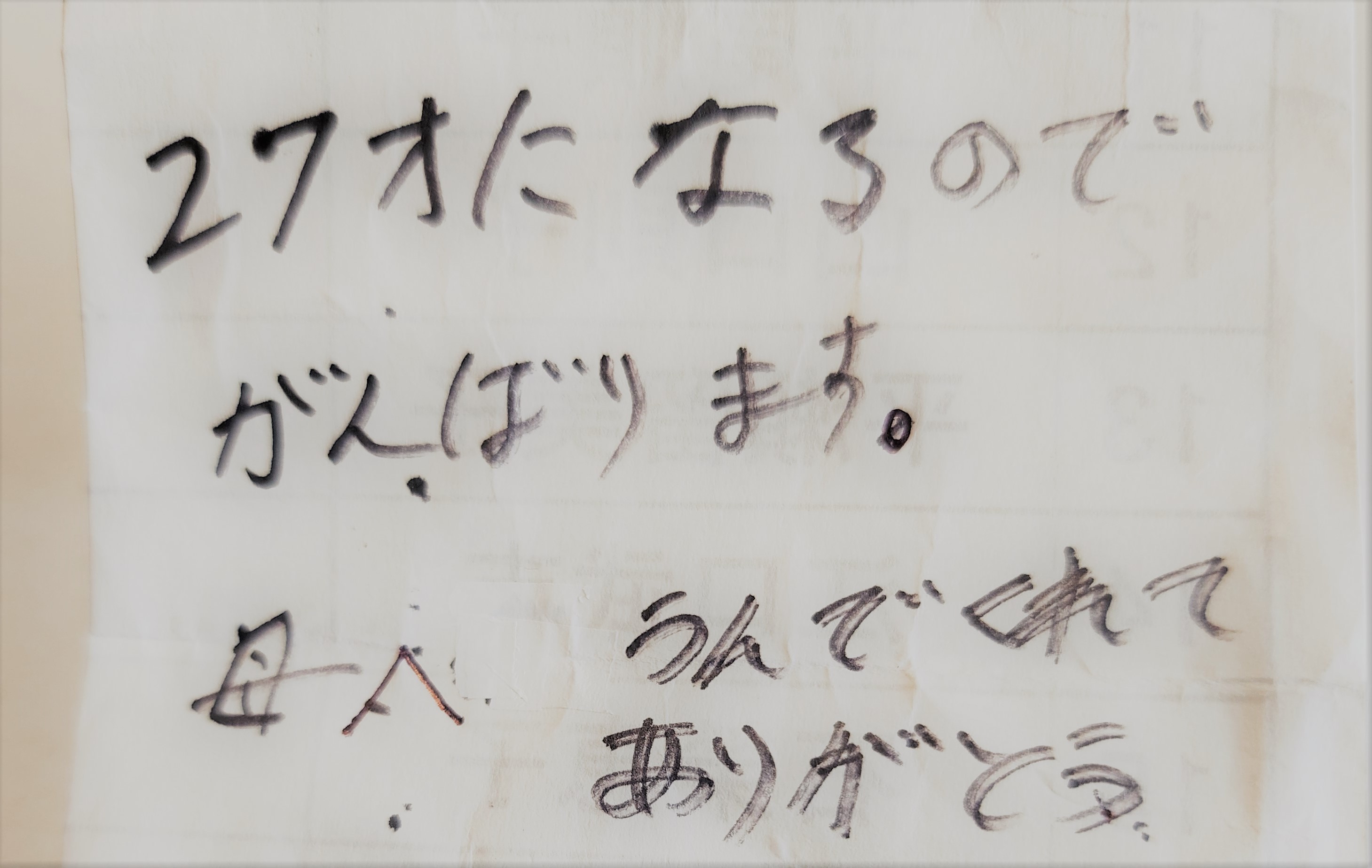ホーム > 上五島グループホームほっと家 > HAPPY🎂BIRTHDAY🌺 2023/09/13 2024/09/12 入所されて6回目の誕生日を数日前迎えられました。 月~金、日と朝早く出勤される事を続けて6年目となりました。元気に自転車通勤されています🚴 誕生日を迎えられて一言 - 上五島グループホームほっと家